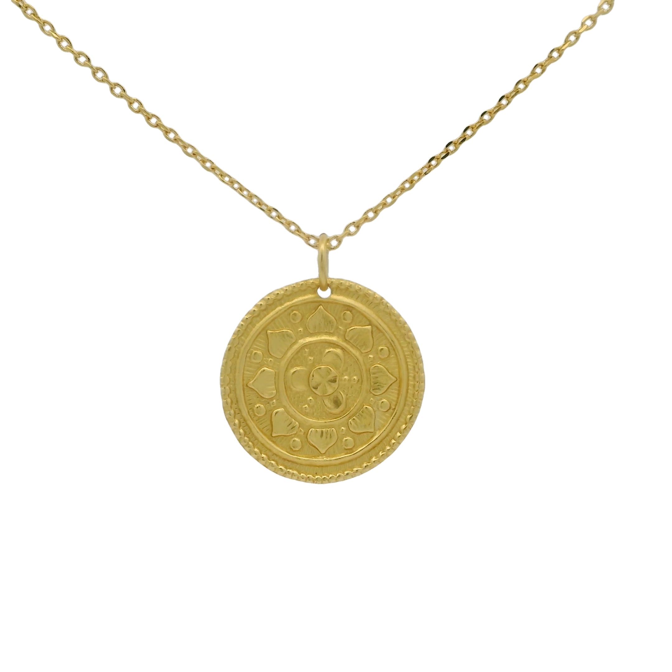 Necklace in brass gilded with 18k fine gold and matte medal stamped by hand.
