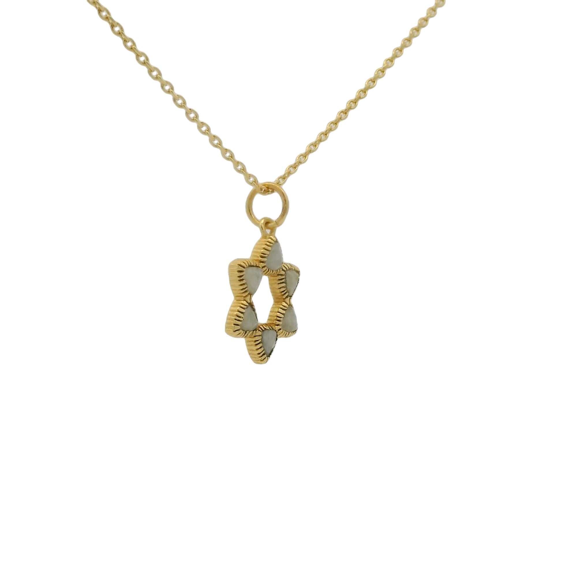 Necklace in brass gilded with 18k fine gold and Star of David pendant in semi-precious natural stones.