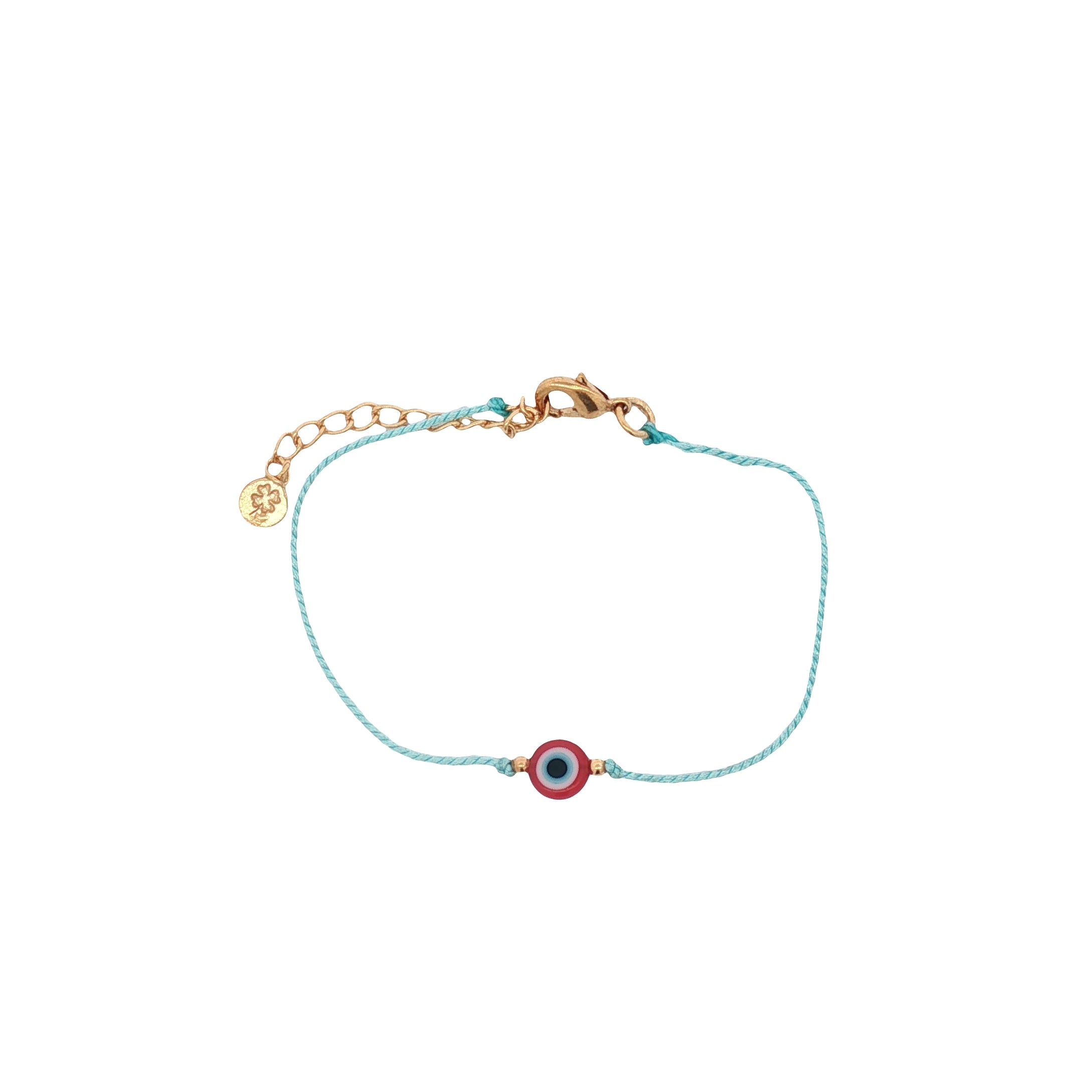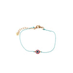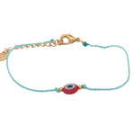 18K fine gold plated chain bracelet with turquoise cord, talismans and mother-of-pearl