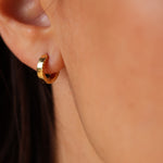 Mini hoop earrings in 18k gold-plated brass with ridges on the sides.