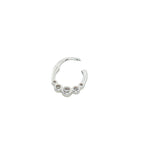 Anneau fermé avec 5 zircons blancs sertis clos sur les côtés : 10 mm x 11 mm