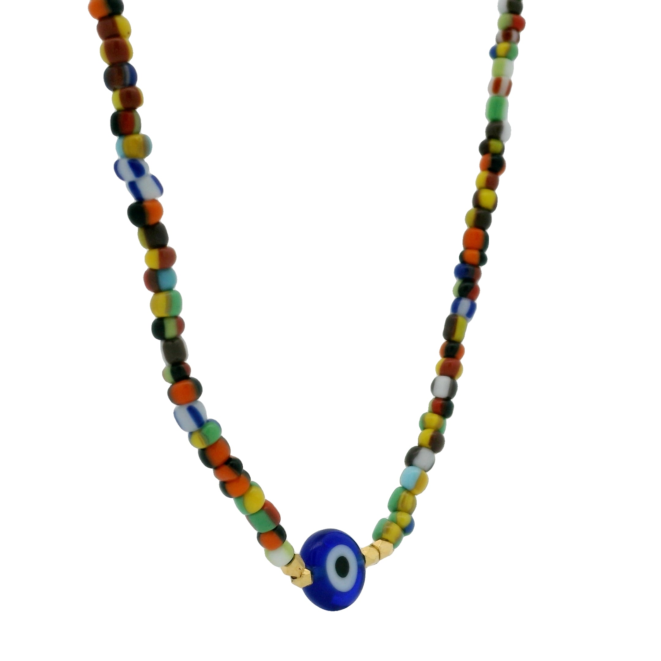 Collier doré oeil en pâte de verre soufflé 42 cm