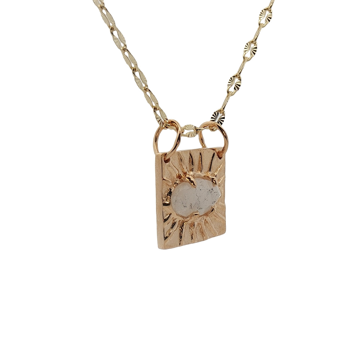 Collier doré plaque avec oeil en pierre de lune 50 cm