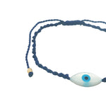 Bracelet doré cordon tressé bleu marine oeil ovale nacre MM