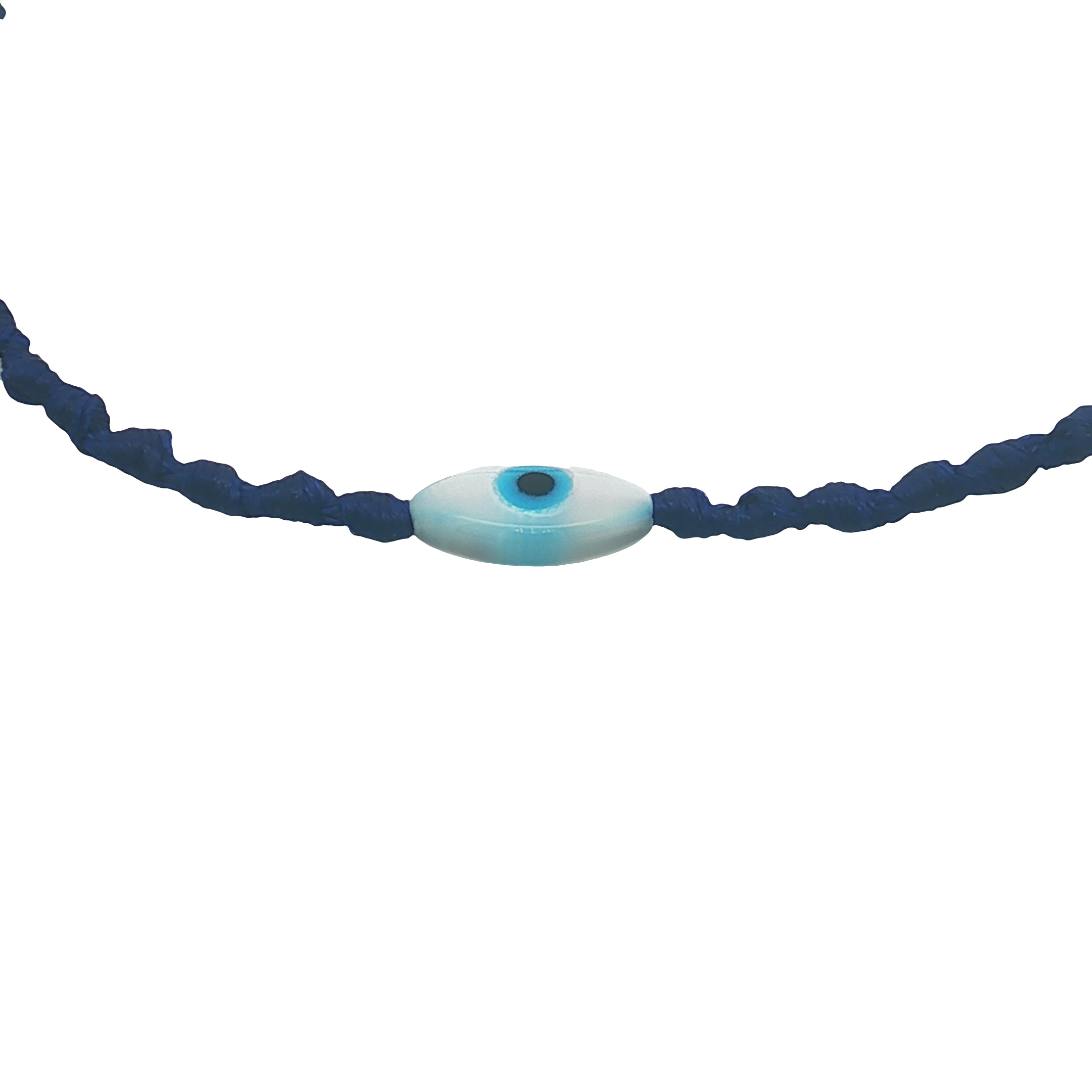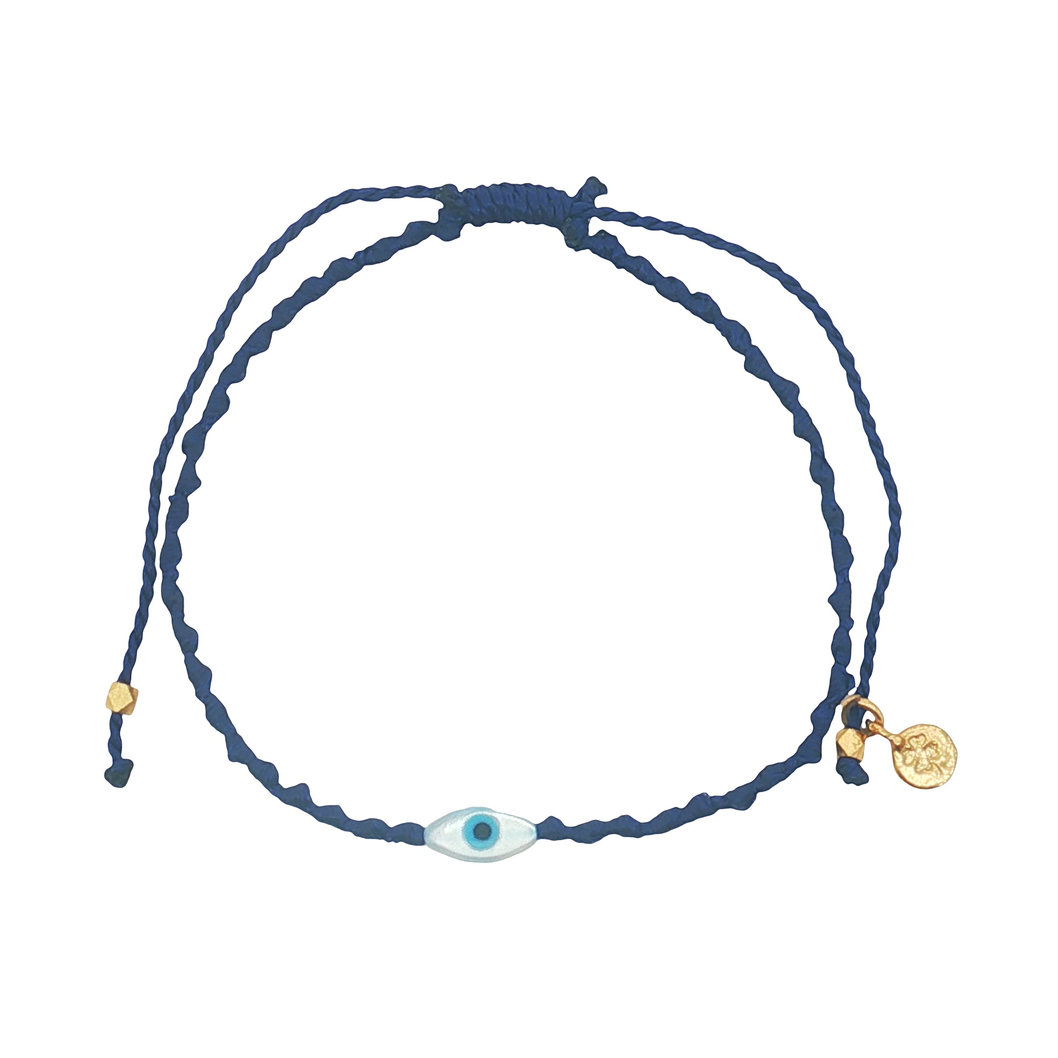 Bracelet doré cordon tressé bleu marine oeil ovale nacre XS