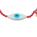 Bracelet doré cordon tressé rouge oeil ovale nacre L