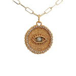 Collier doré médaille avec zircons et oeil en prehnite 42 cm