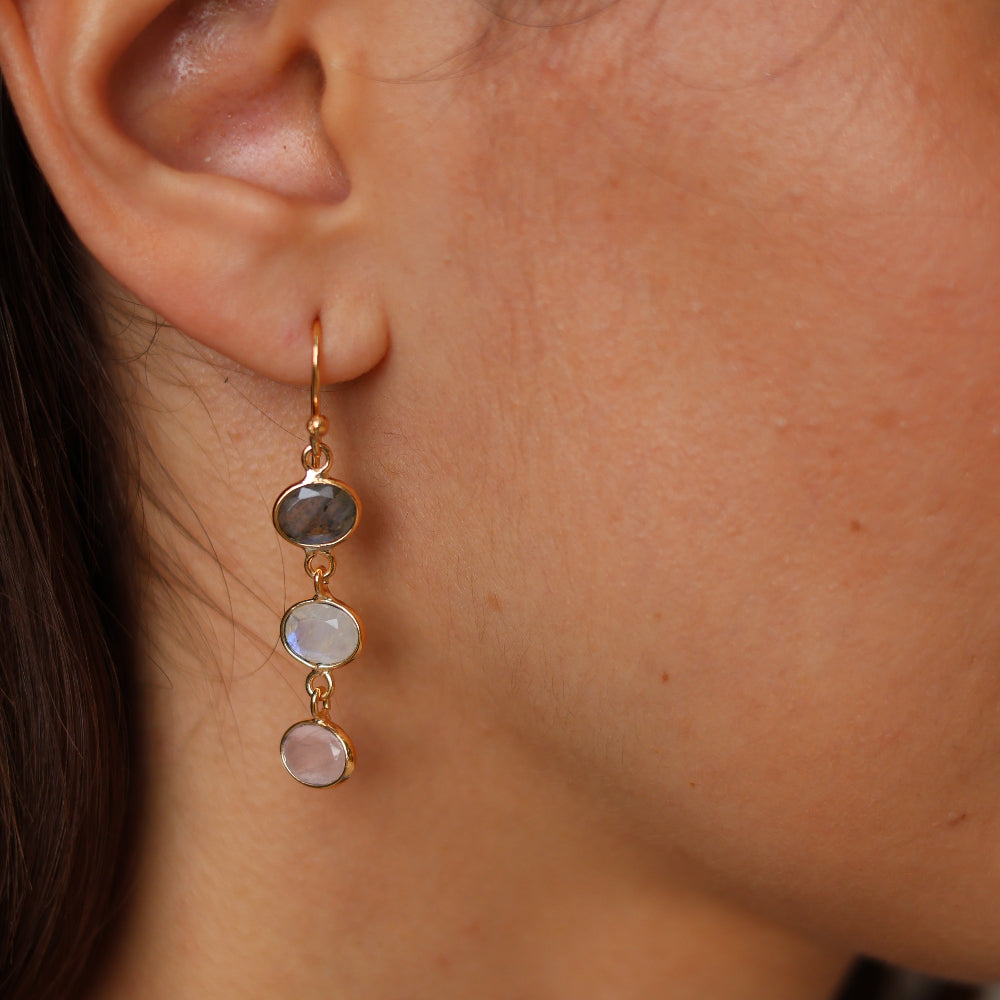 Boucles d'oreilles dorées dentelées onyx rouge et perles