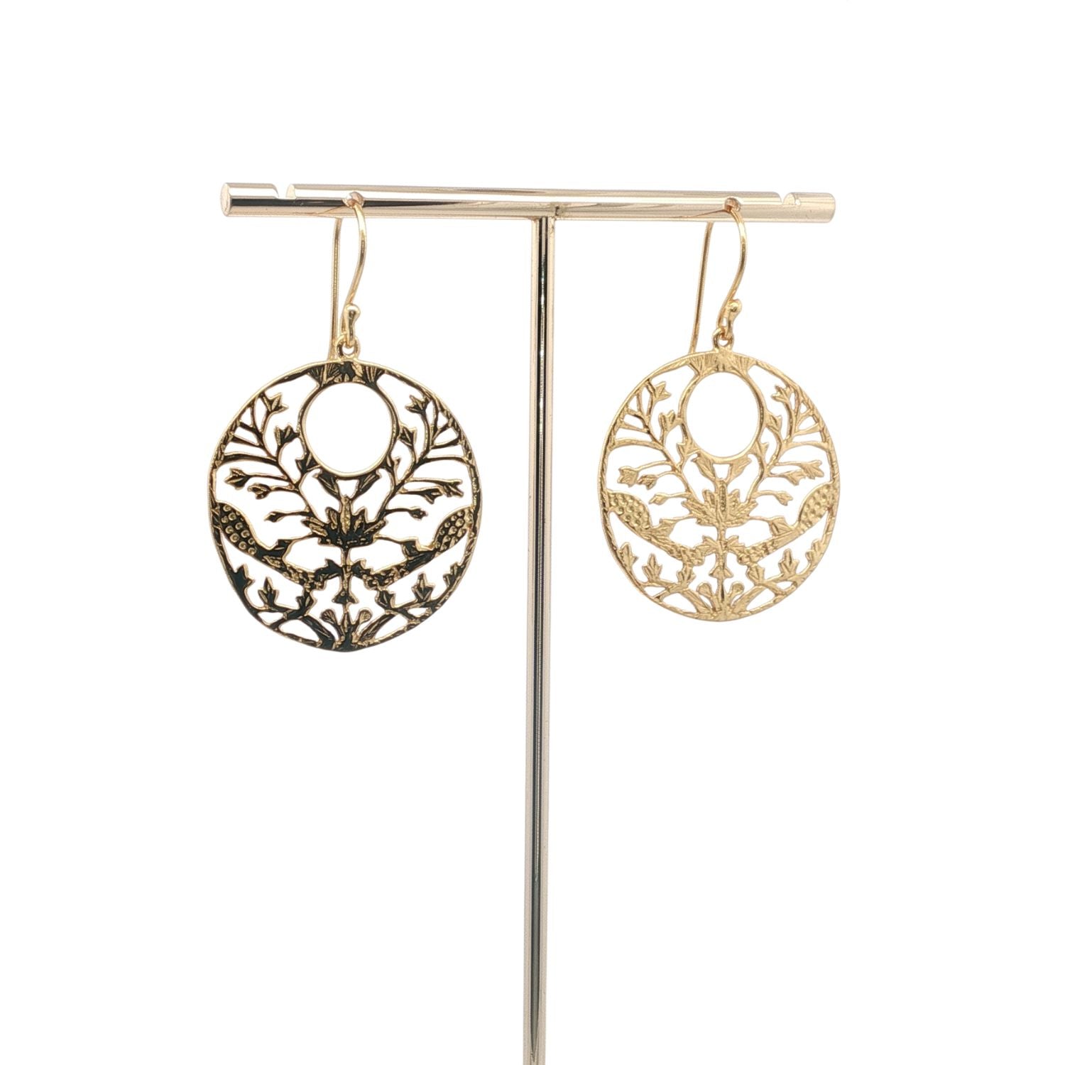 Boucles d'oreilles dorées rondes XL avec deux oiseaux