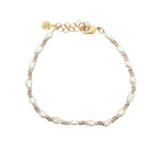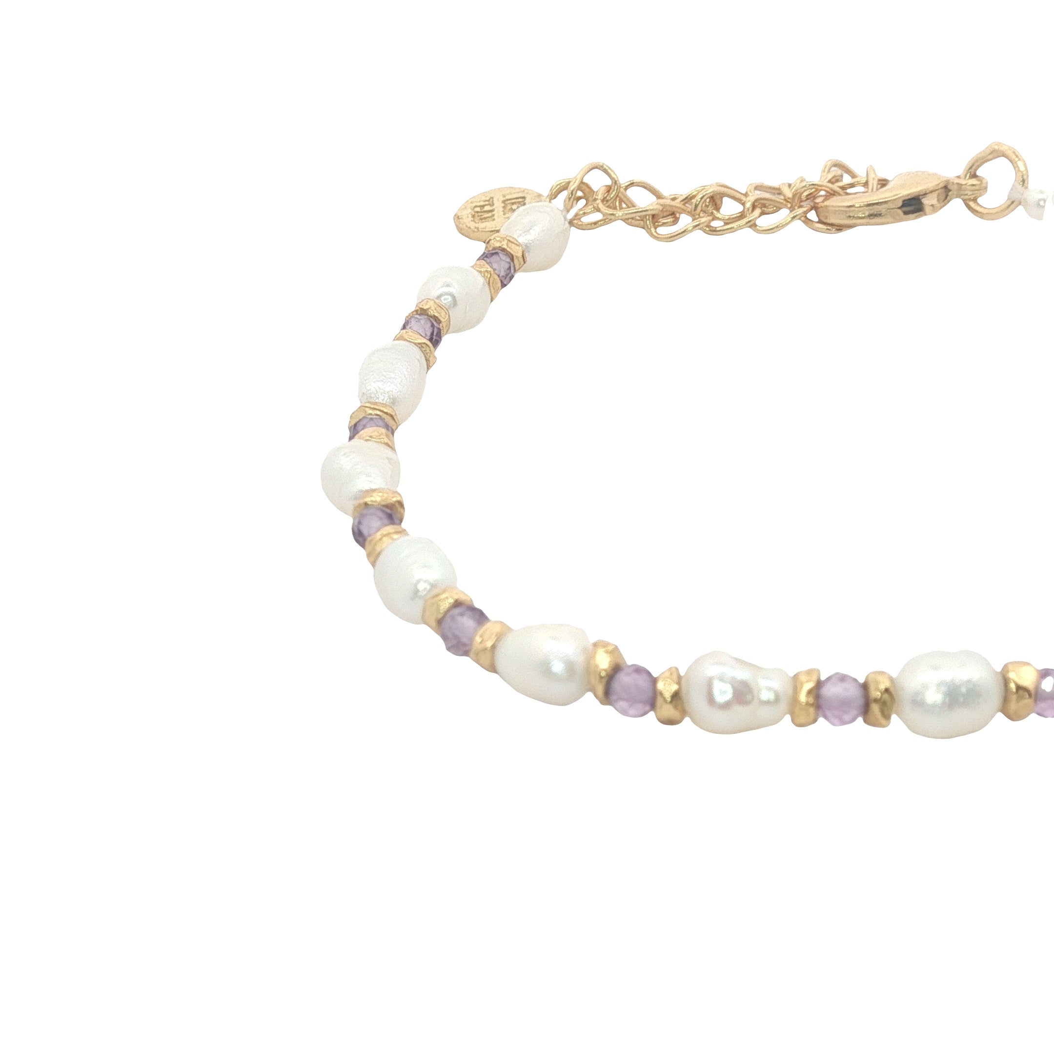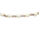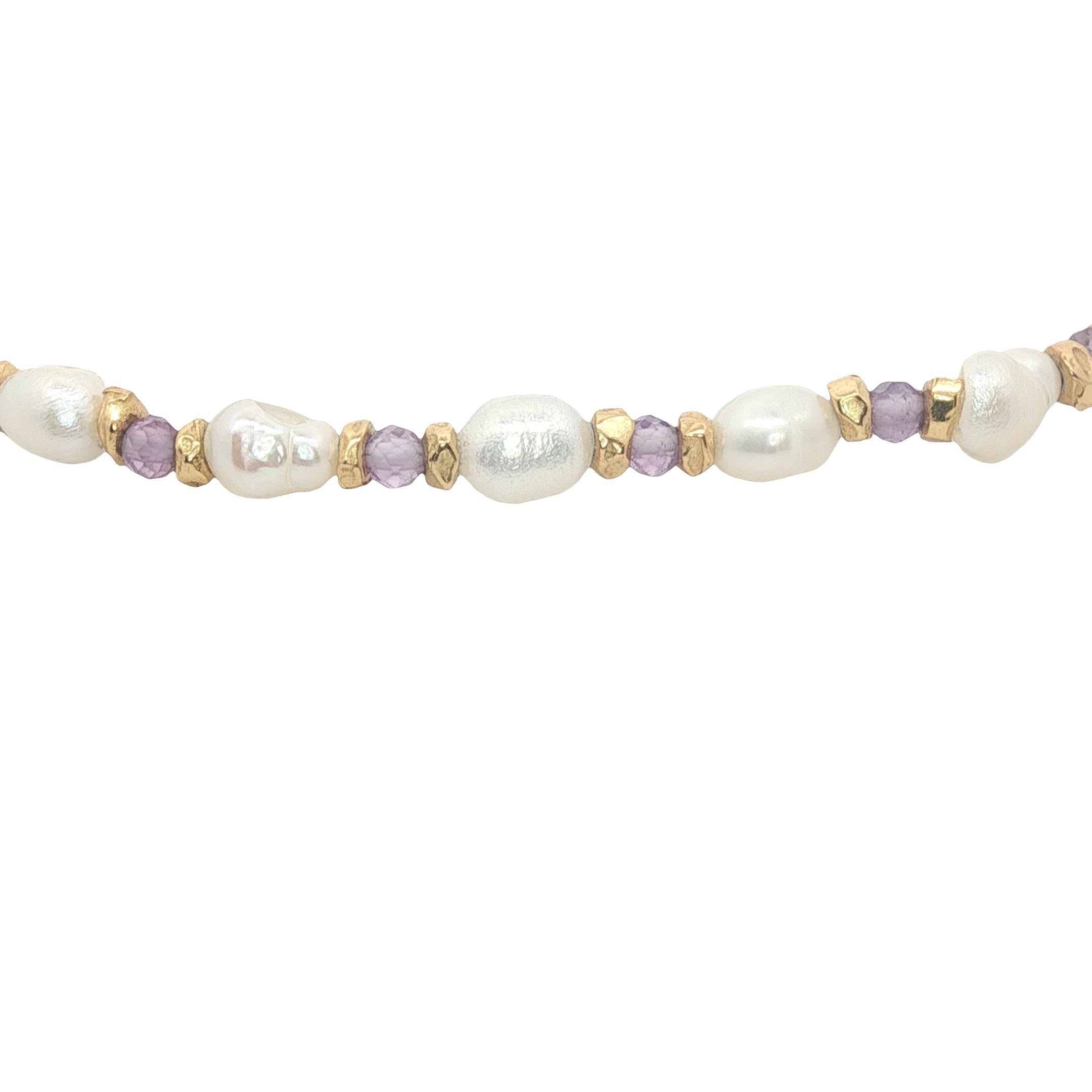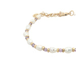 Bracelet avec alternance de perles de culture irrégulières, perles dorées et améthyste