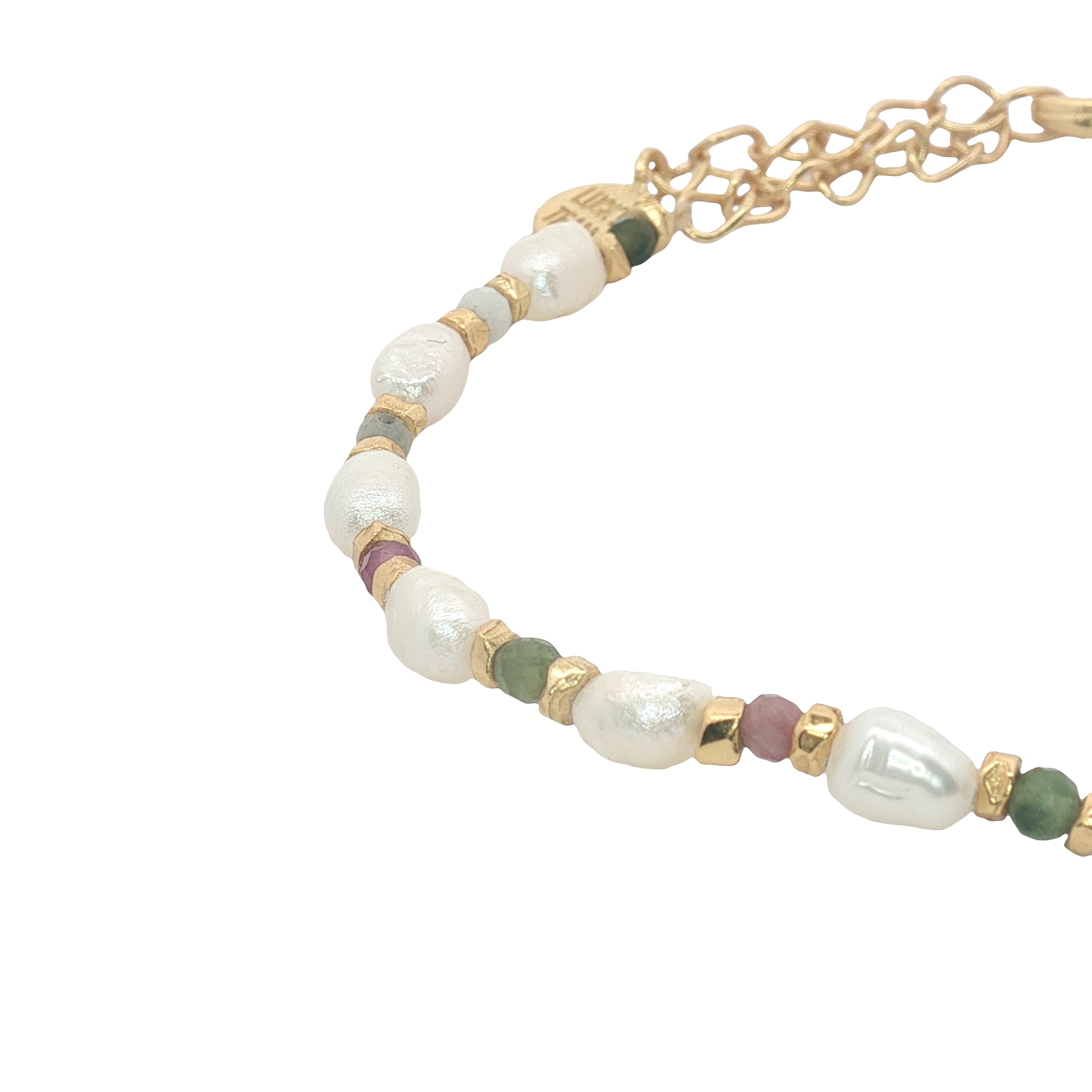 Bracelet doré perles de culture, perles dorées et tourmaline