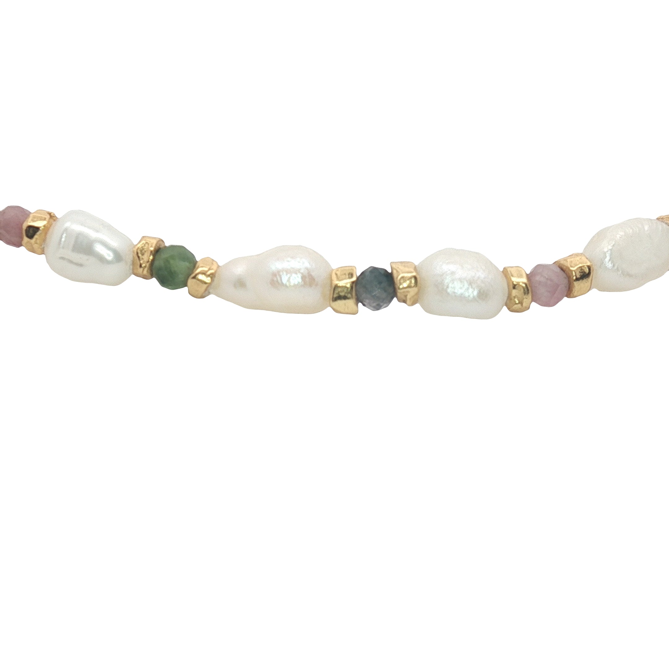 Bracelet avec alternance de perles de culture irrégulières, perles dorées et tourmaline