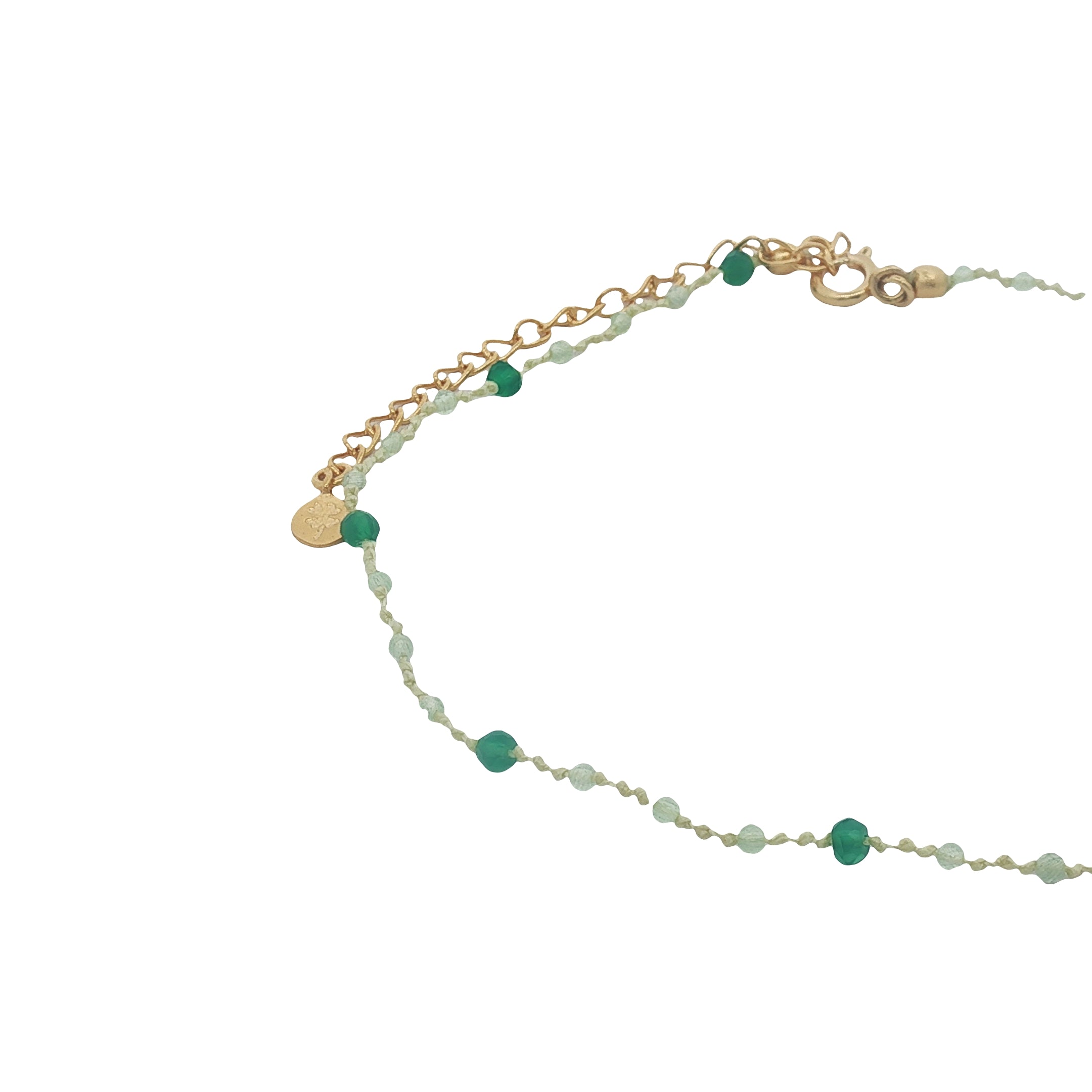Chaine de cheville cordon vert clair prehnite et onyx verte