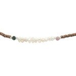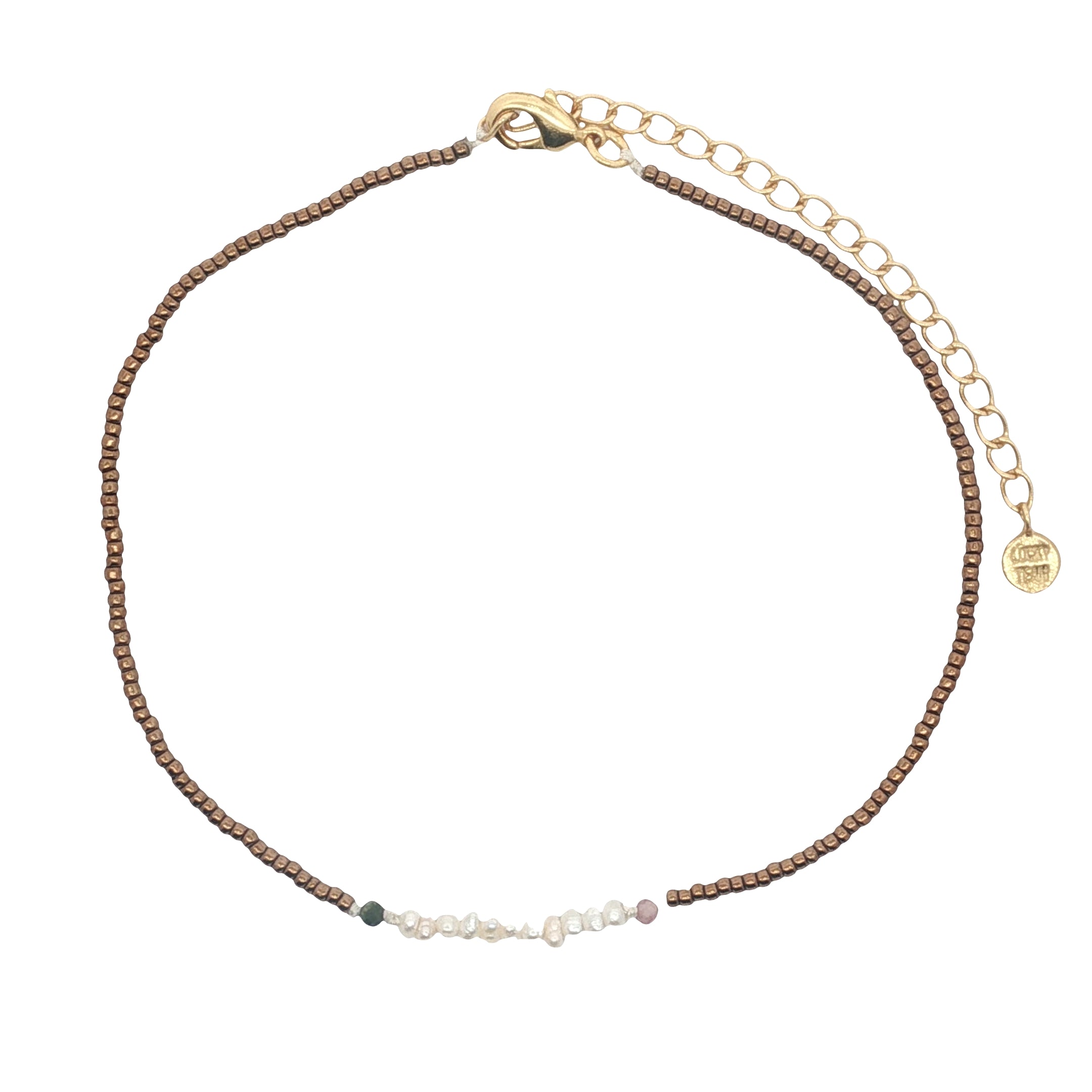 Chaine de cheville dorée perles de culture, tourmaline et perles métallisées marron