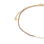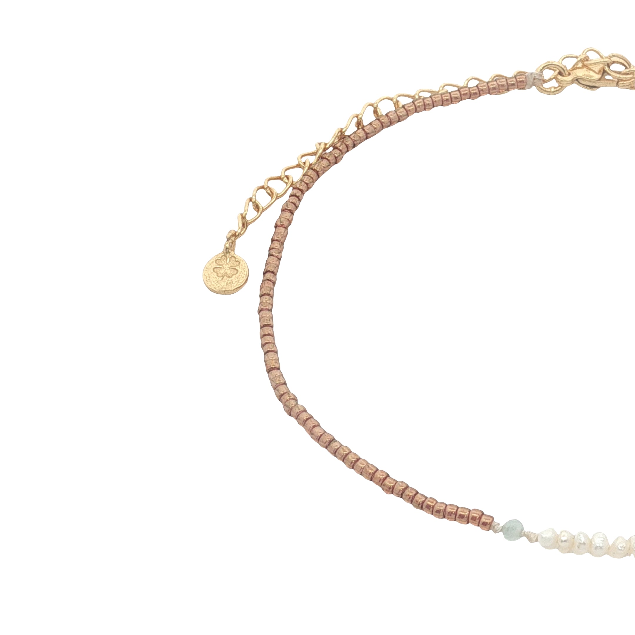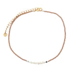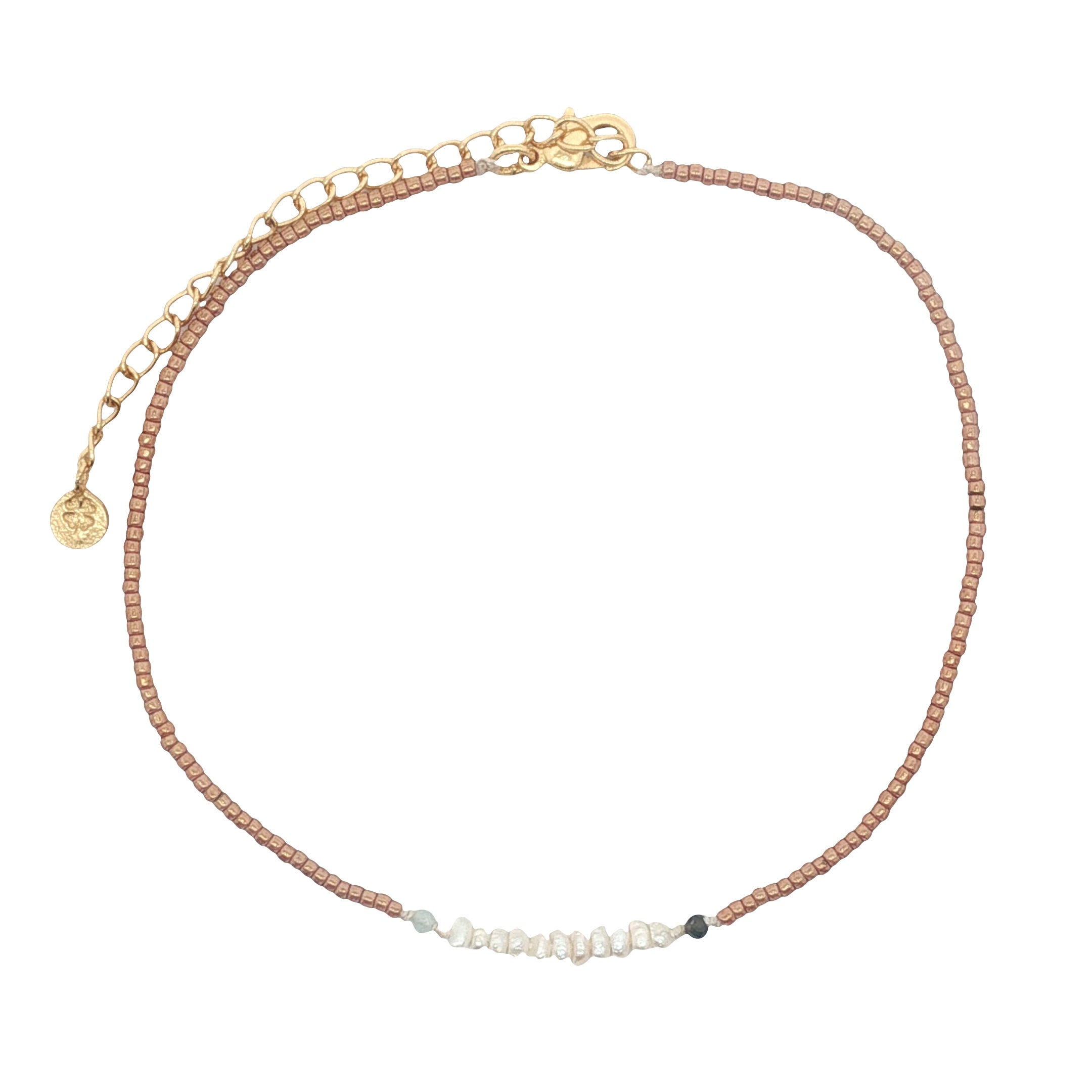 Chaine de cheville dorée perles de culture, tourmaline et perles métallisées mordorées
