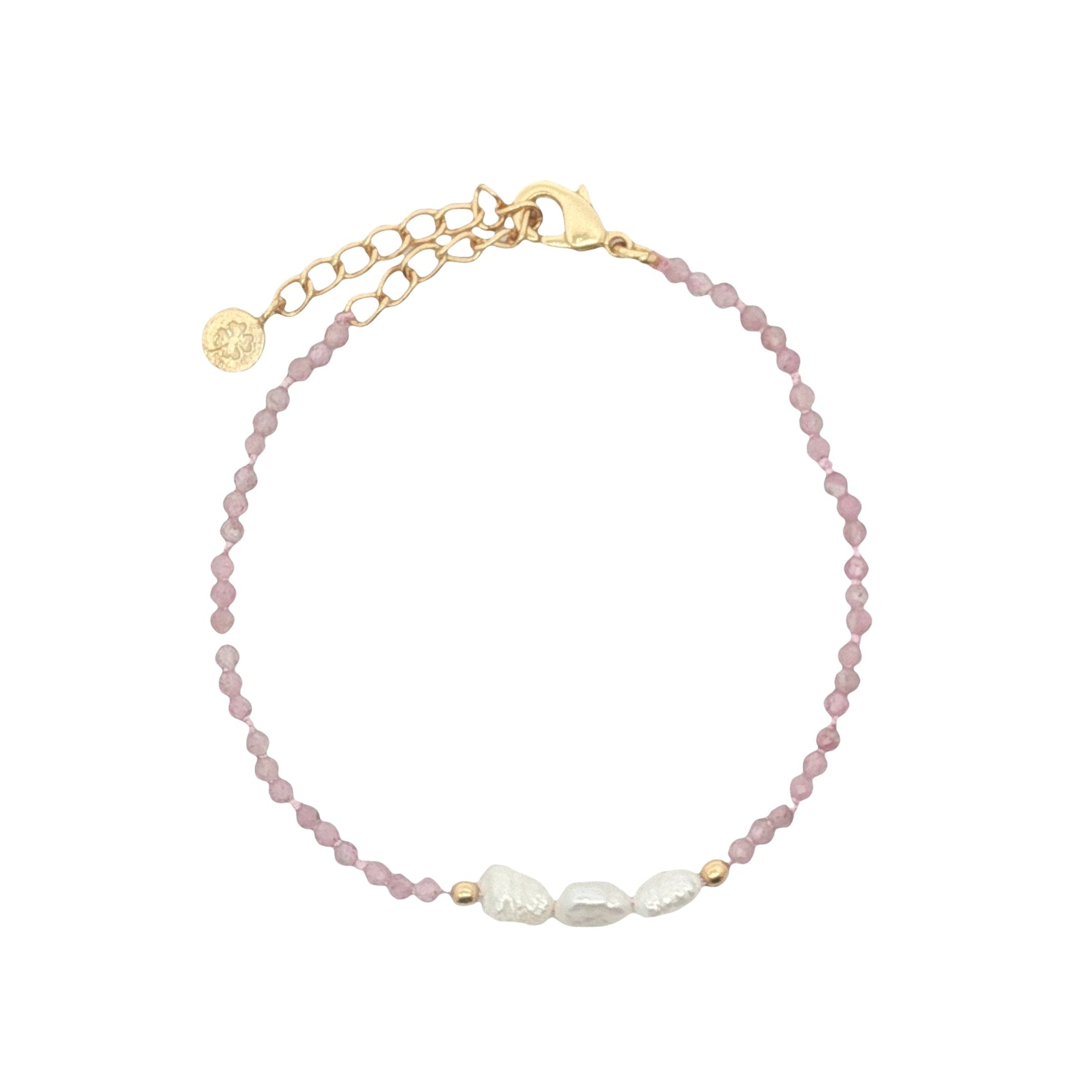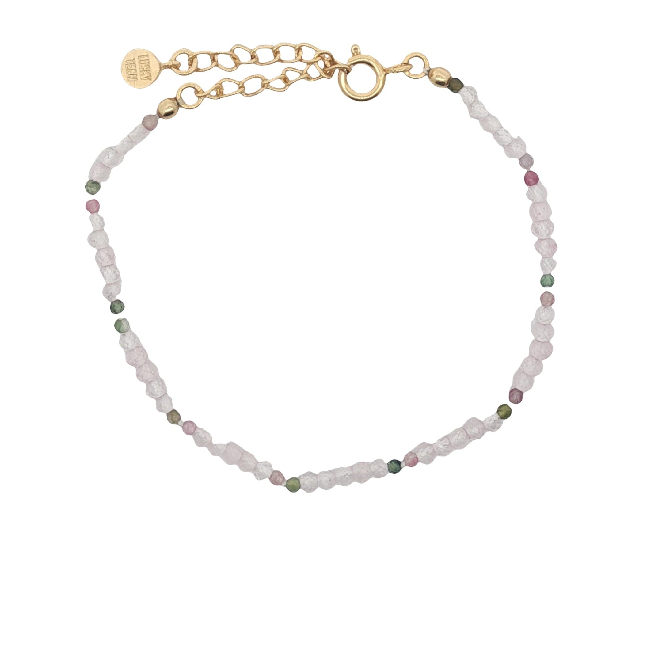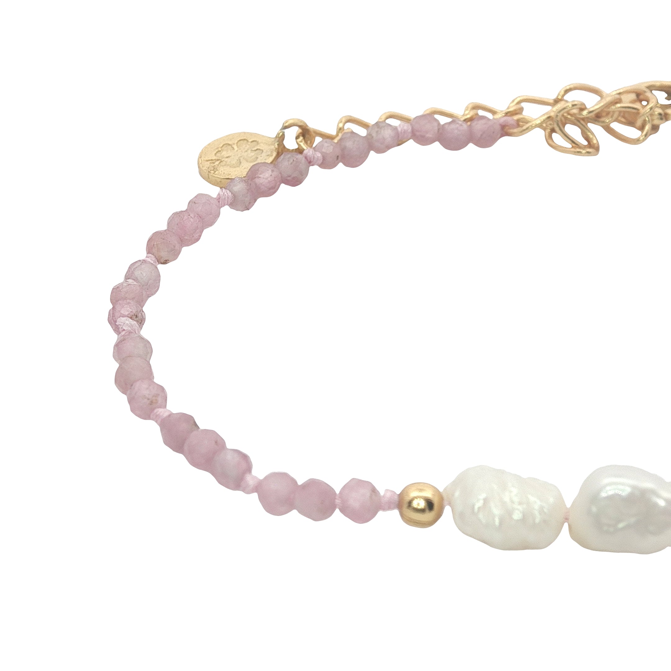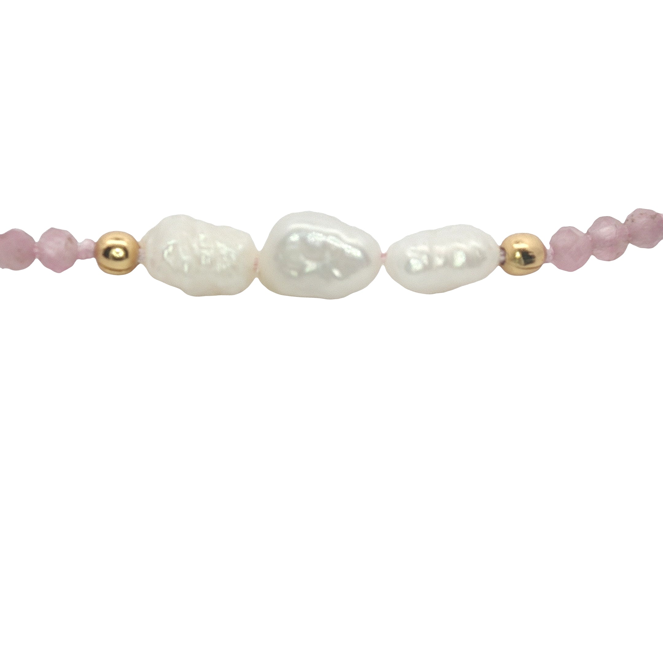 Bracelet doré en tourmaline rose, perles de culture et perles dorées