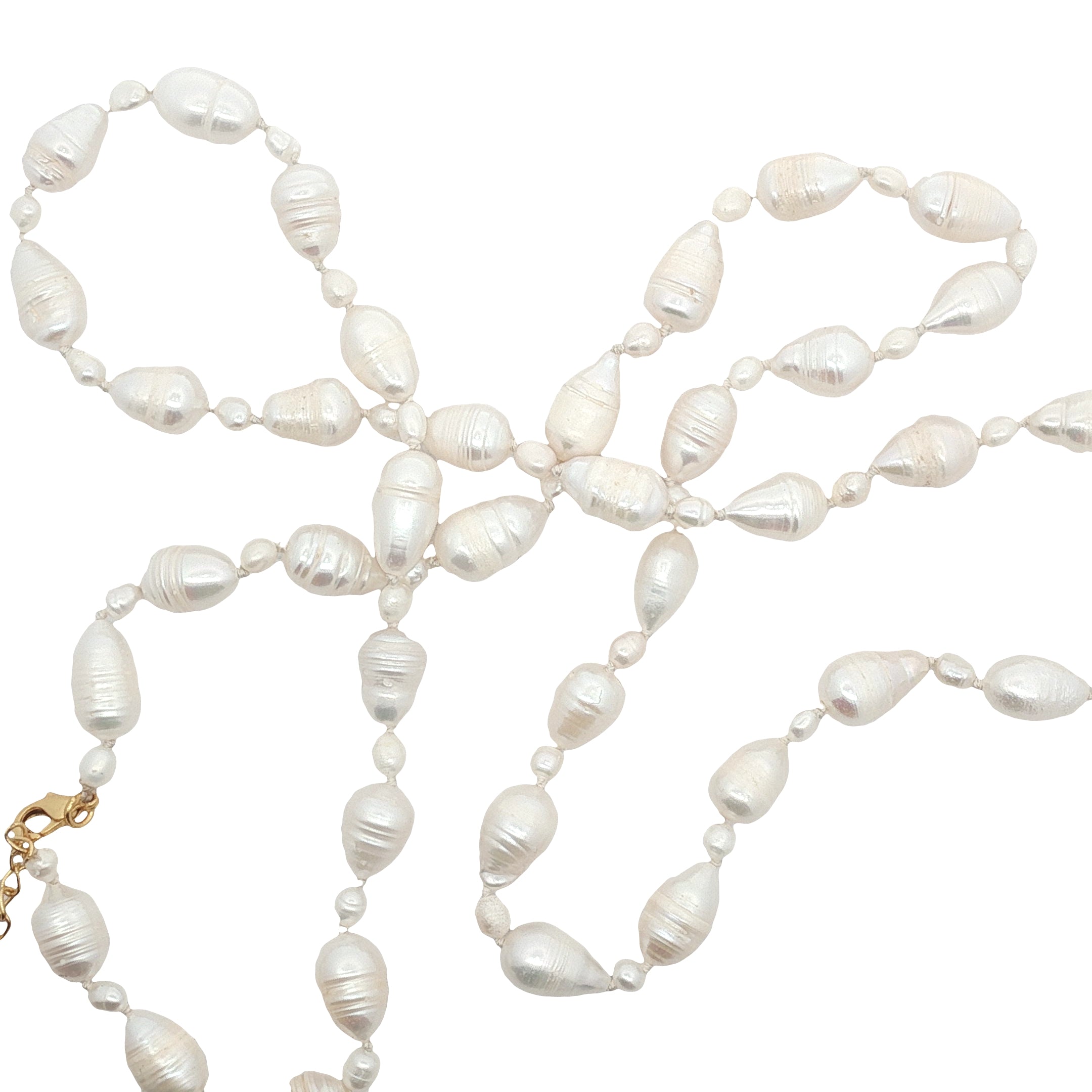 Collier doré alternance de petites et grandes perles de culture 75 cm