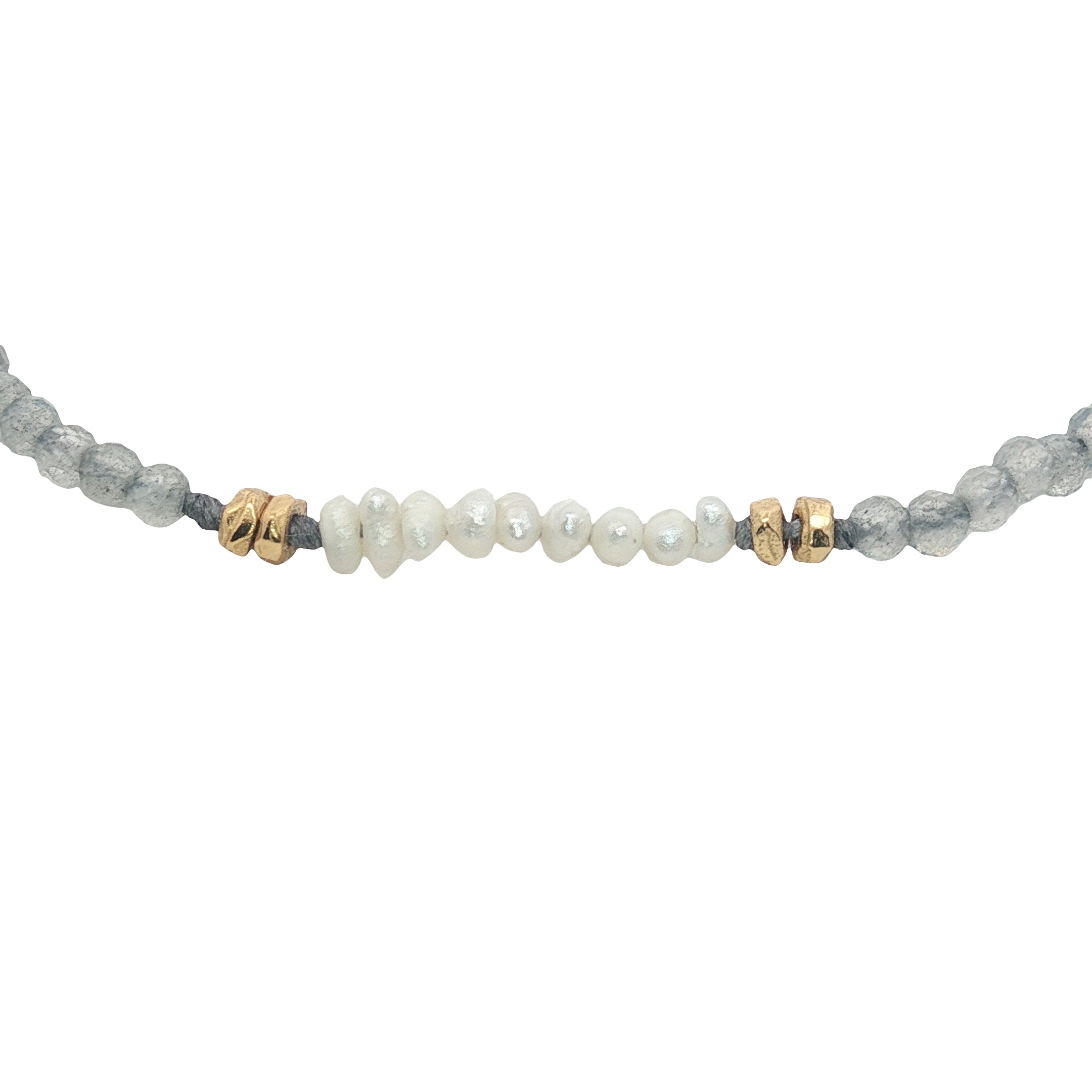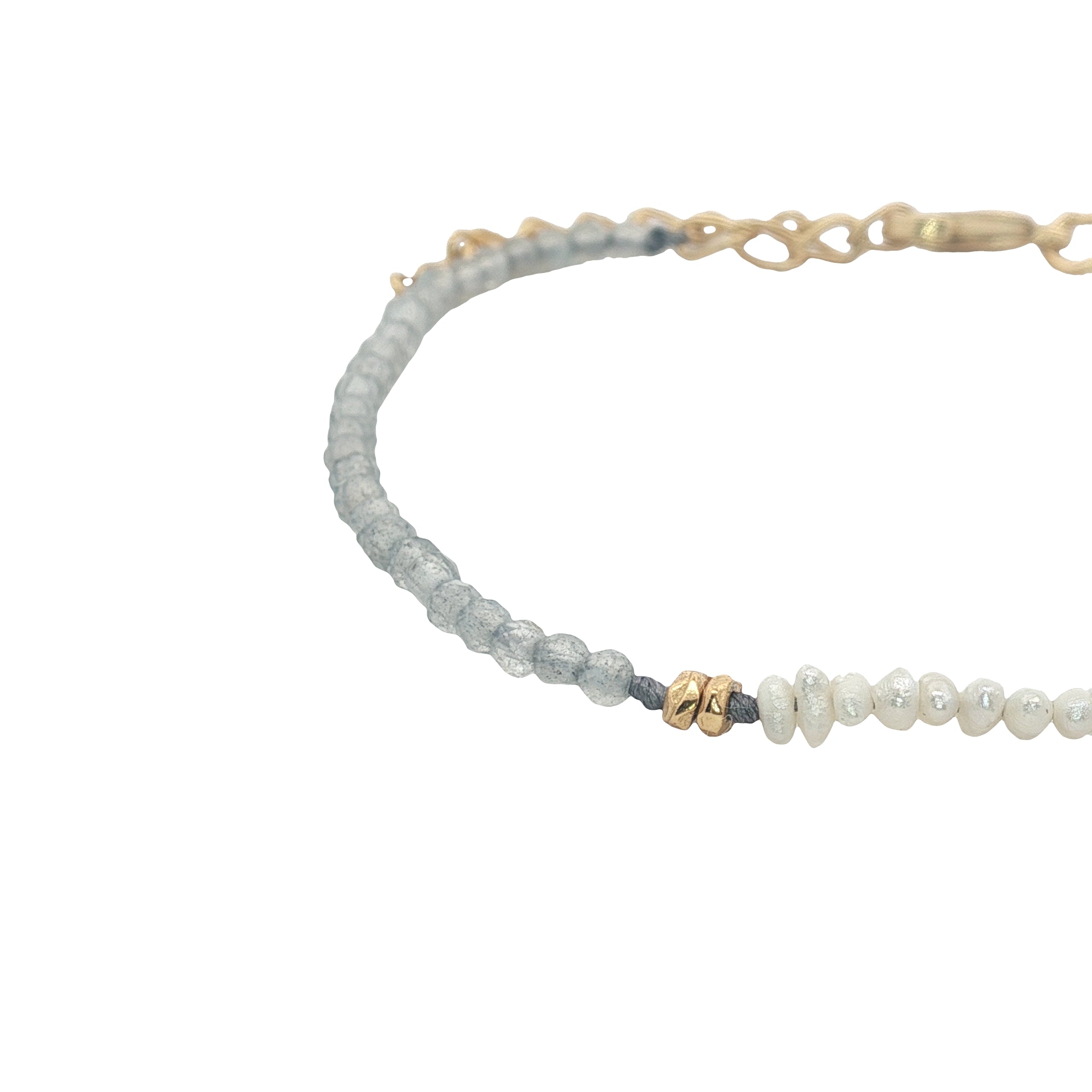 Bracelet doré en labradorite, petites perles de culture et perles dorées
