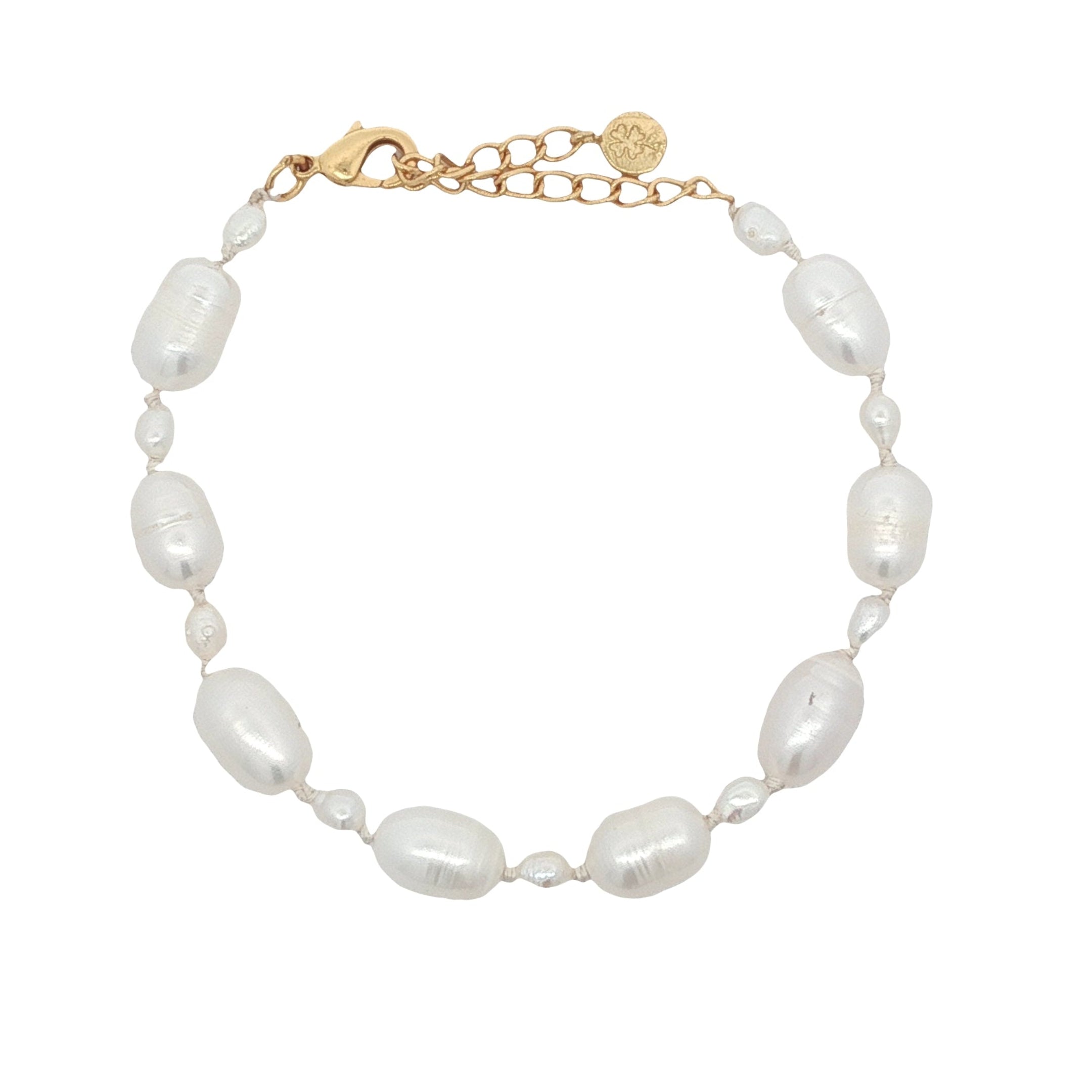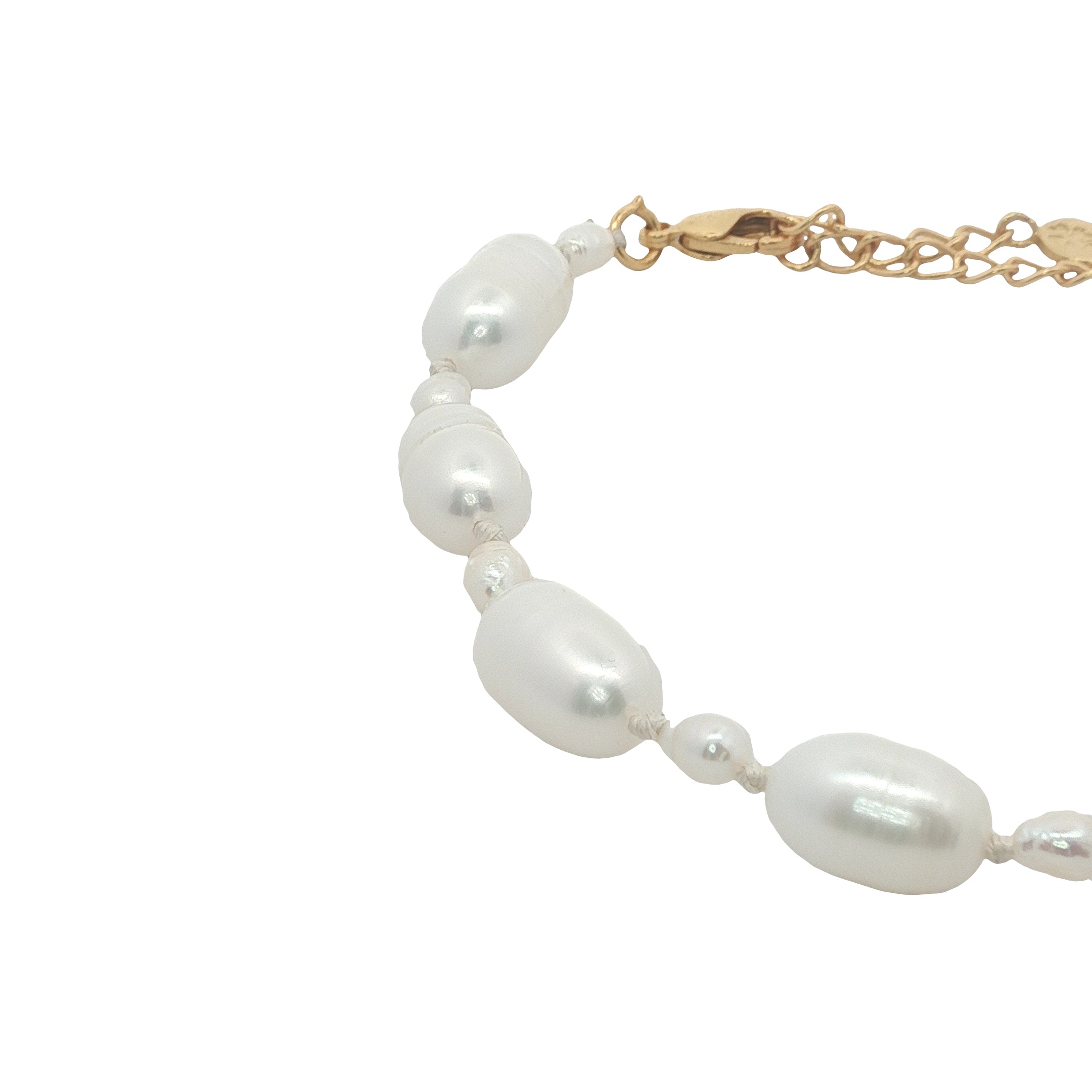 Bracelet doré perles de culture de différentes tailles fil blanc