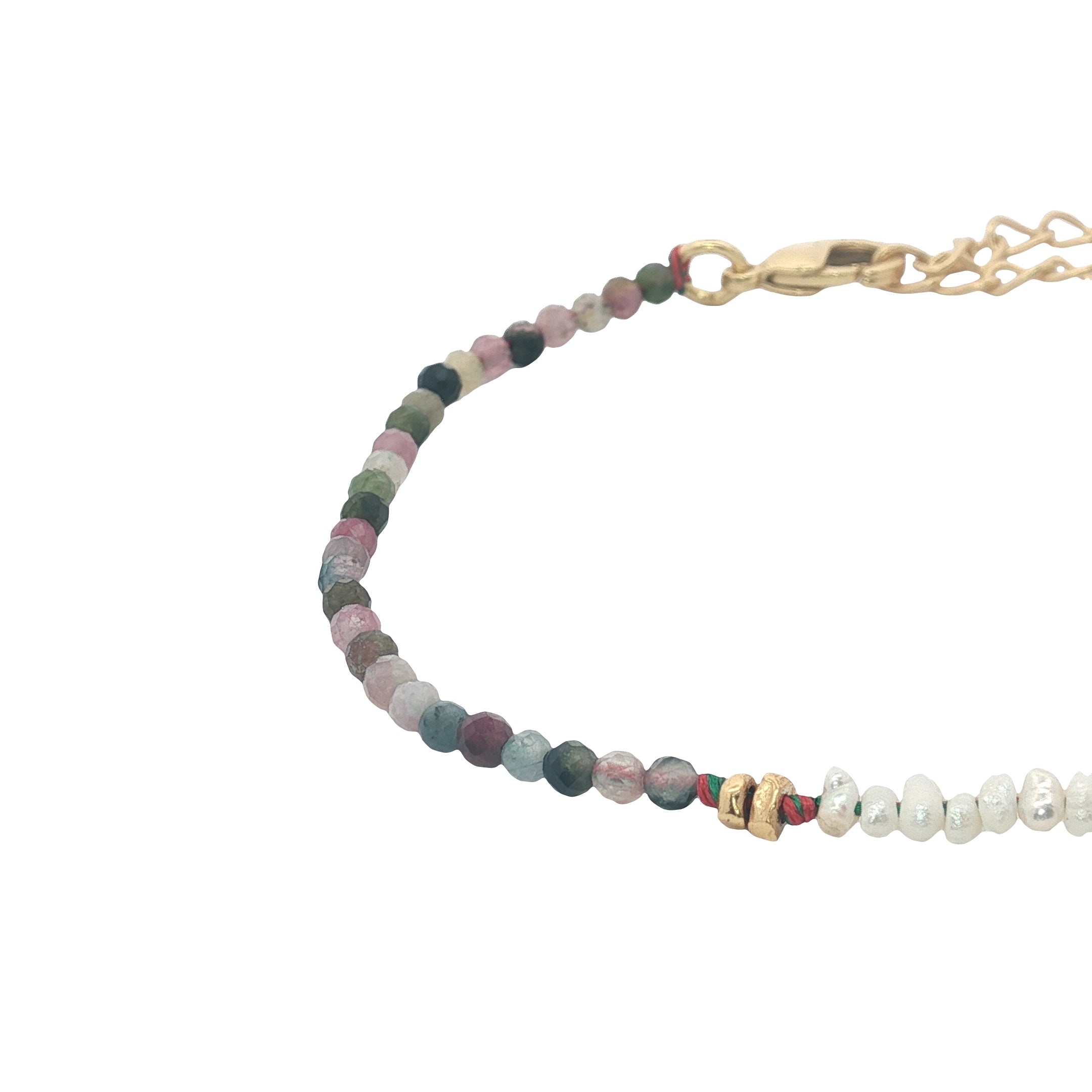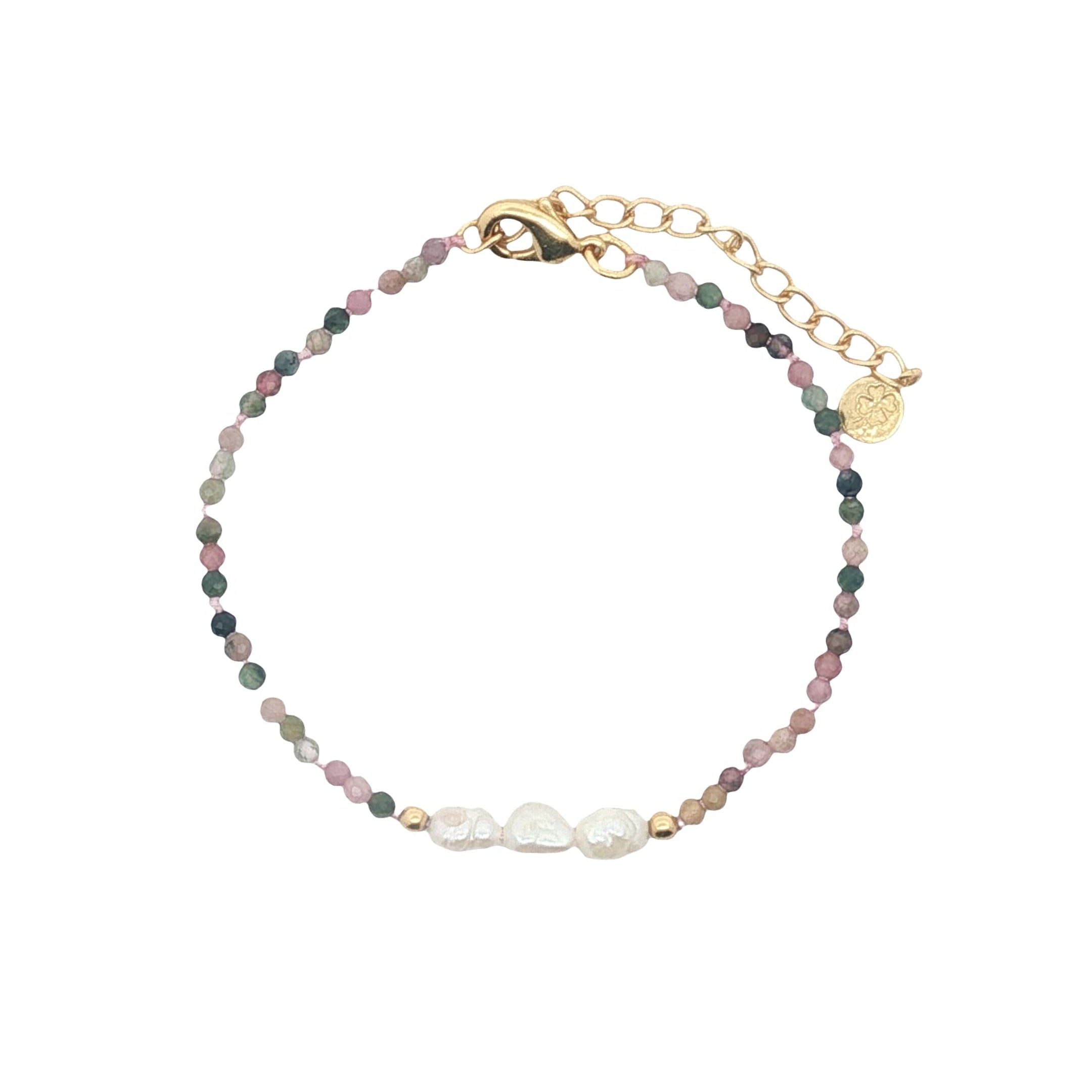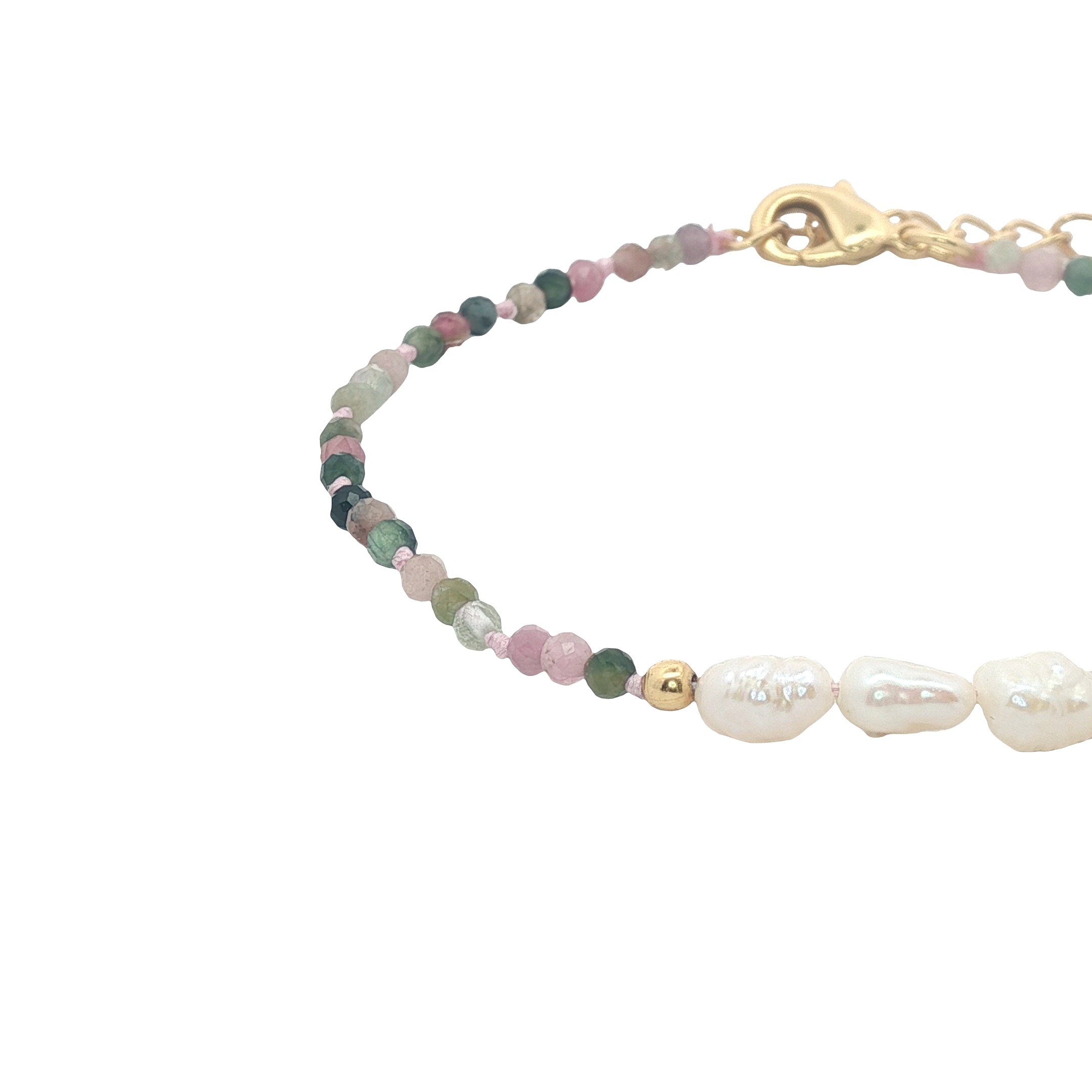 Bracelet doré en tourmaline, petites perles de culture et perles dorées