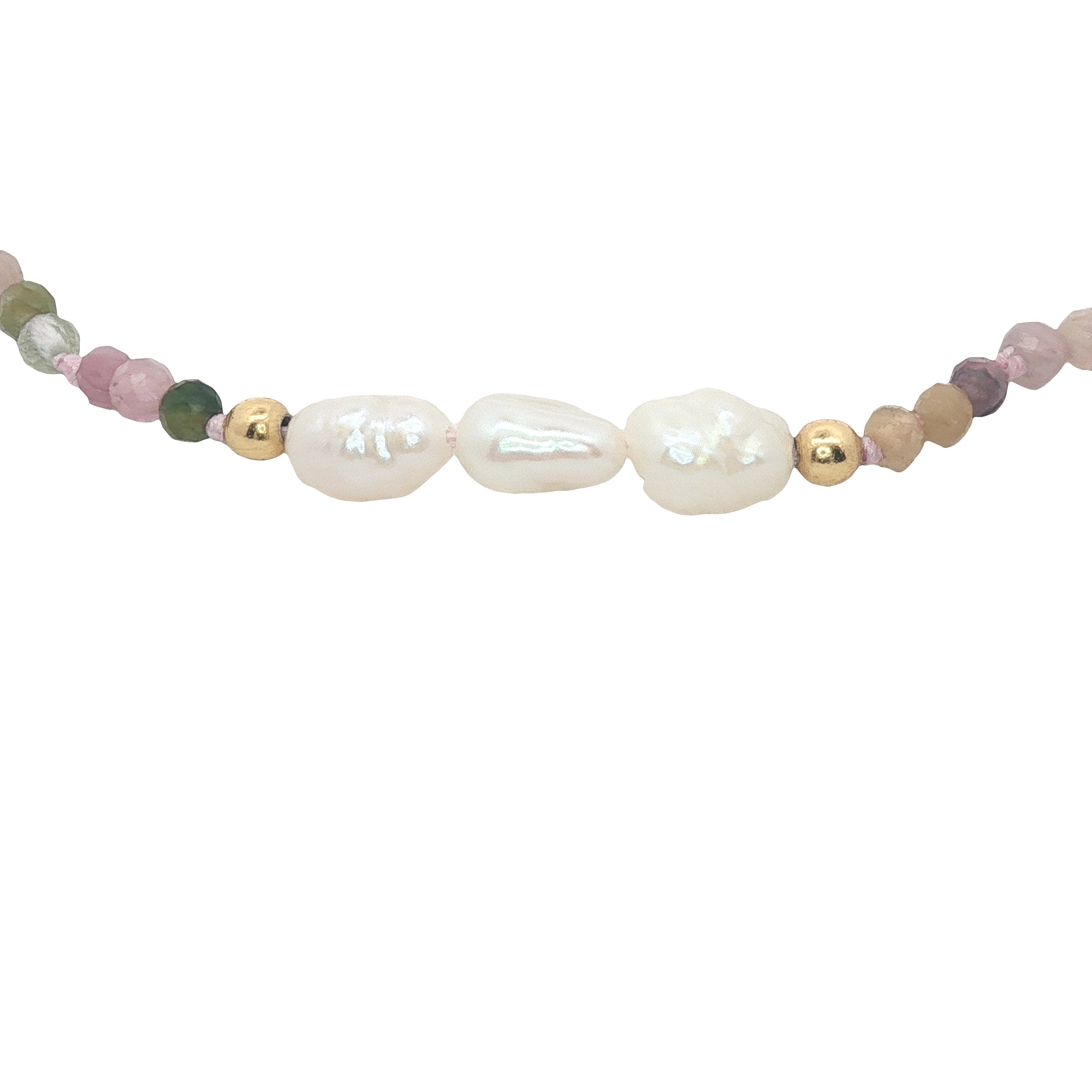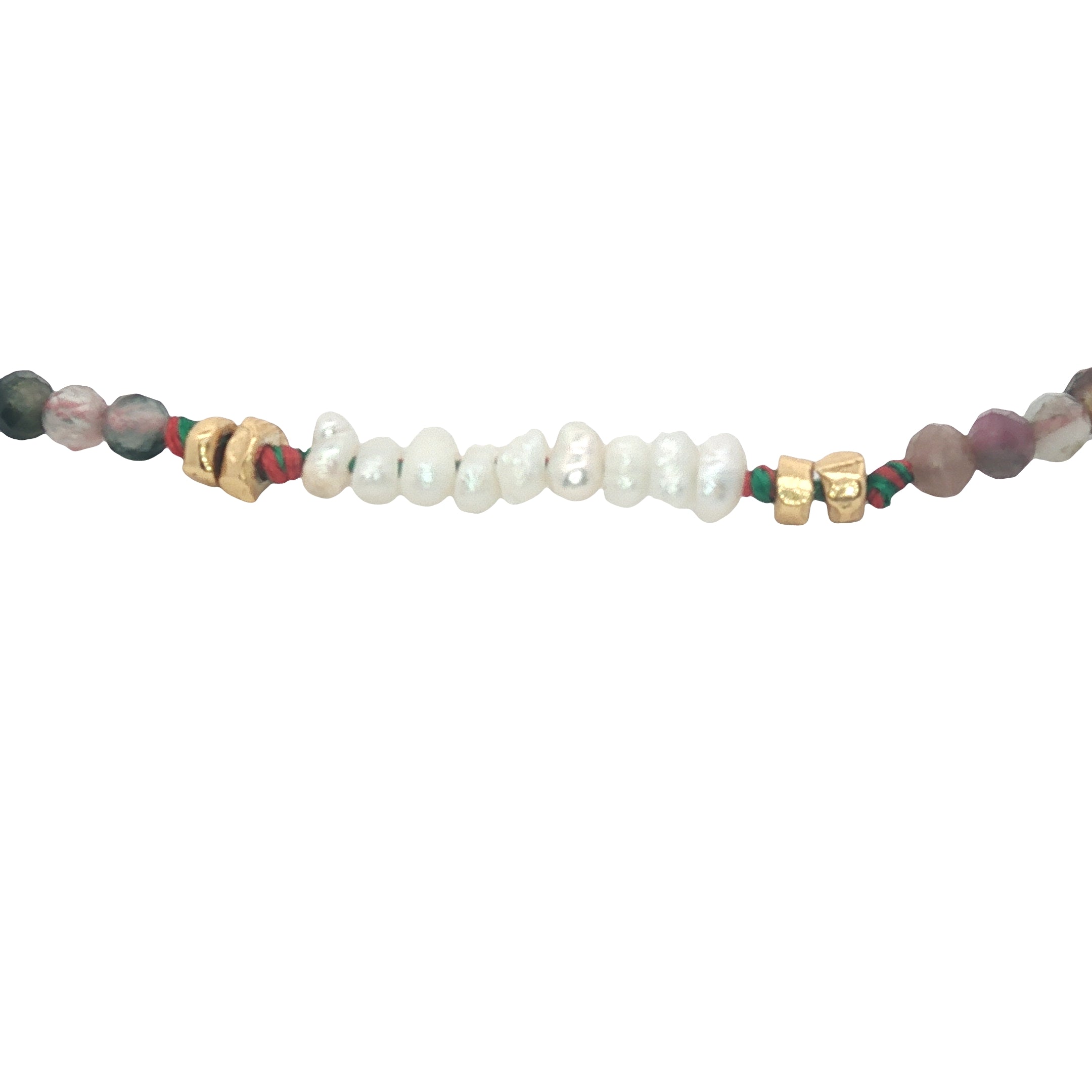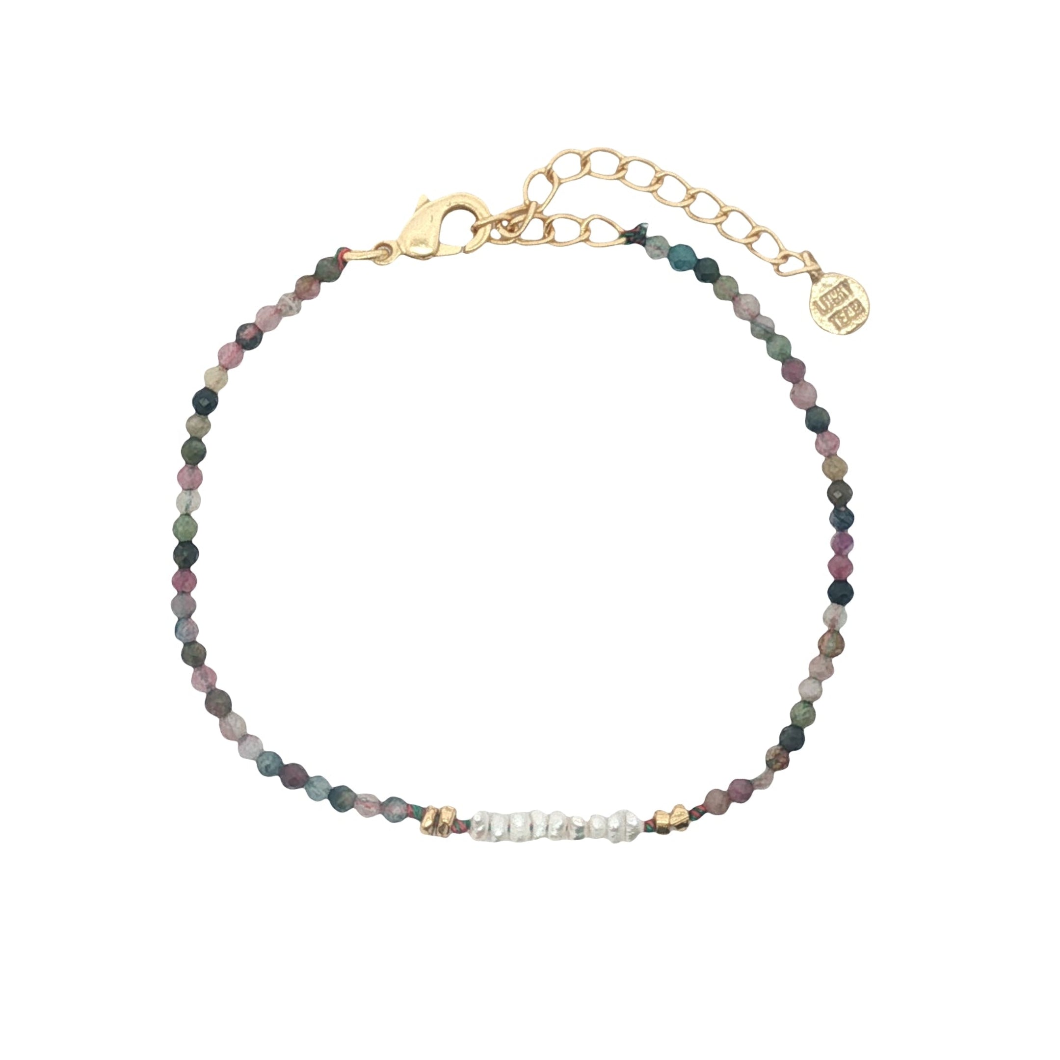 Bracelet doré en tourmaline, petites perles de culture et perles dorées