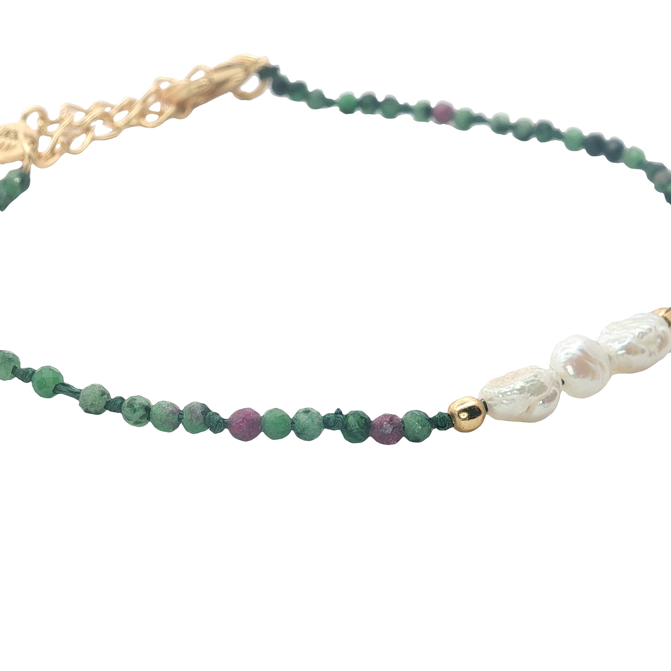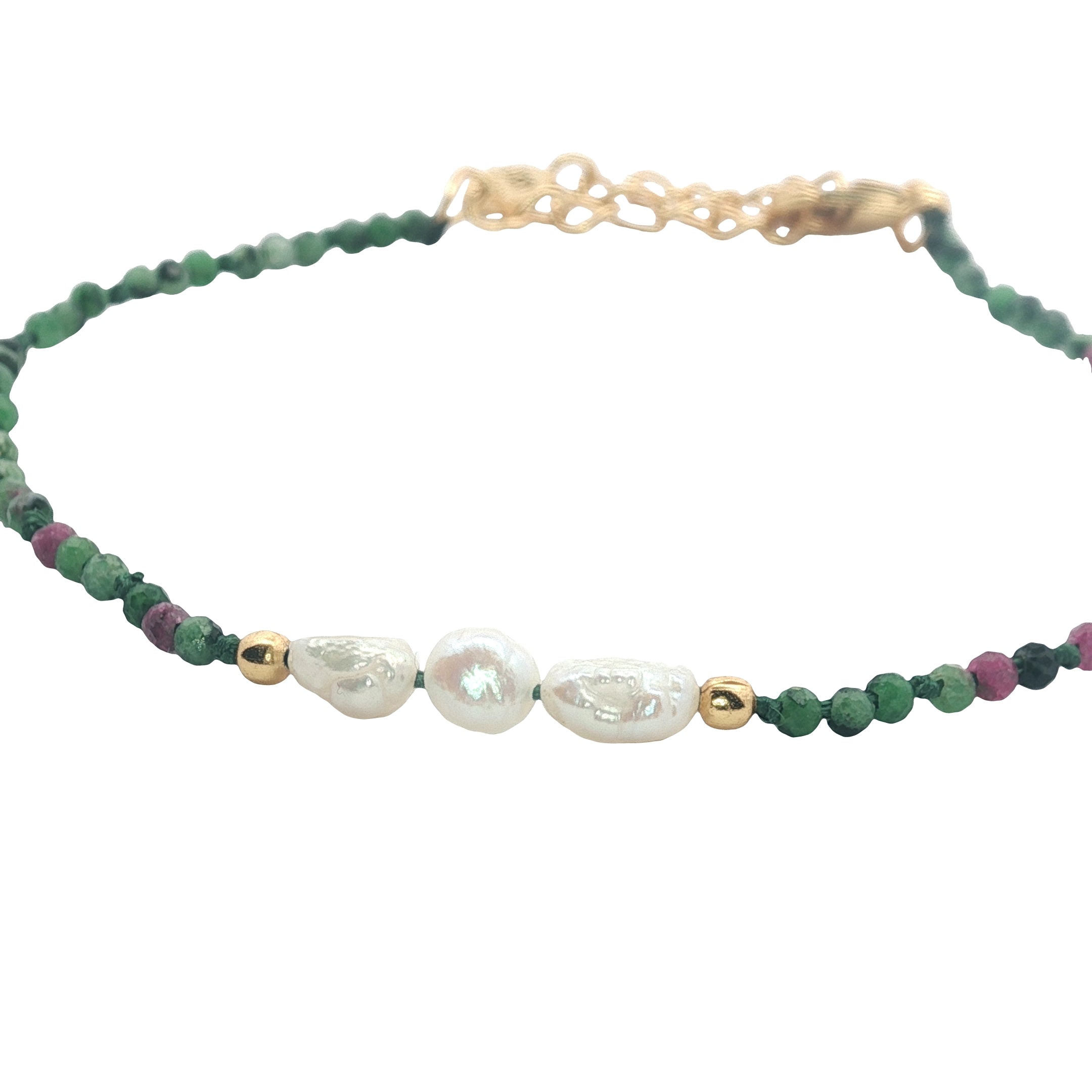 Bracelet doré en rubis zoisite, perles de culture et perles dorées