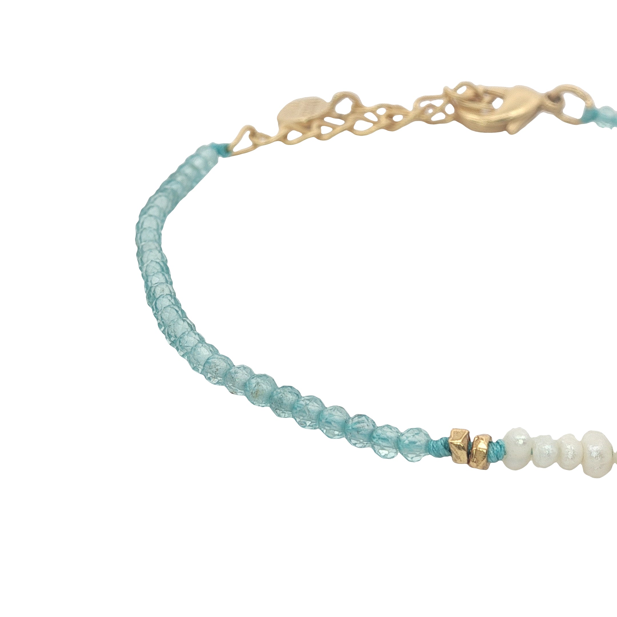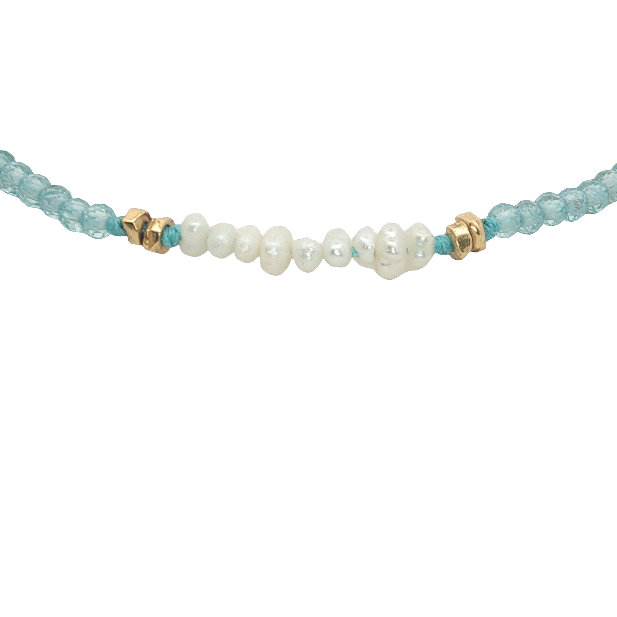 Bracelet doré en topaze bleue, petites perles de culture et perles dorées