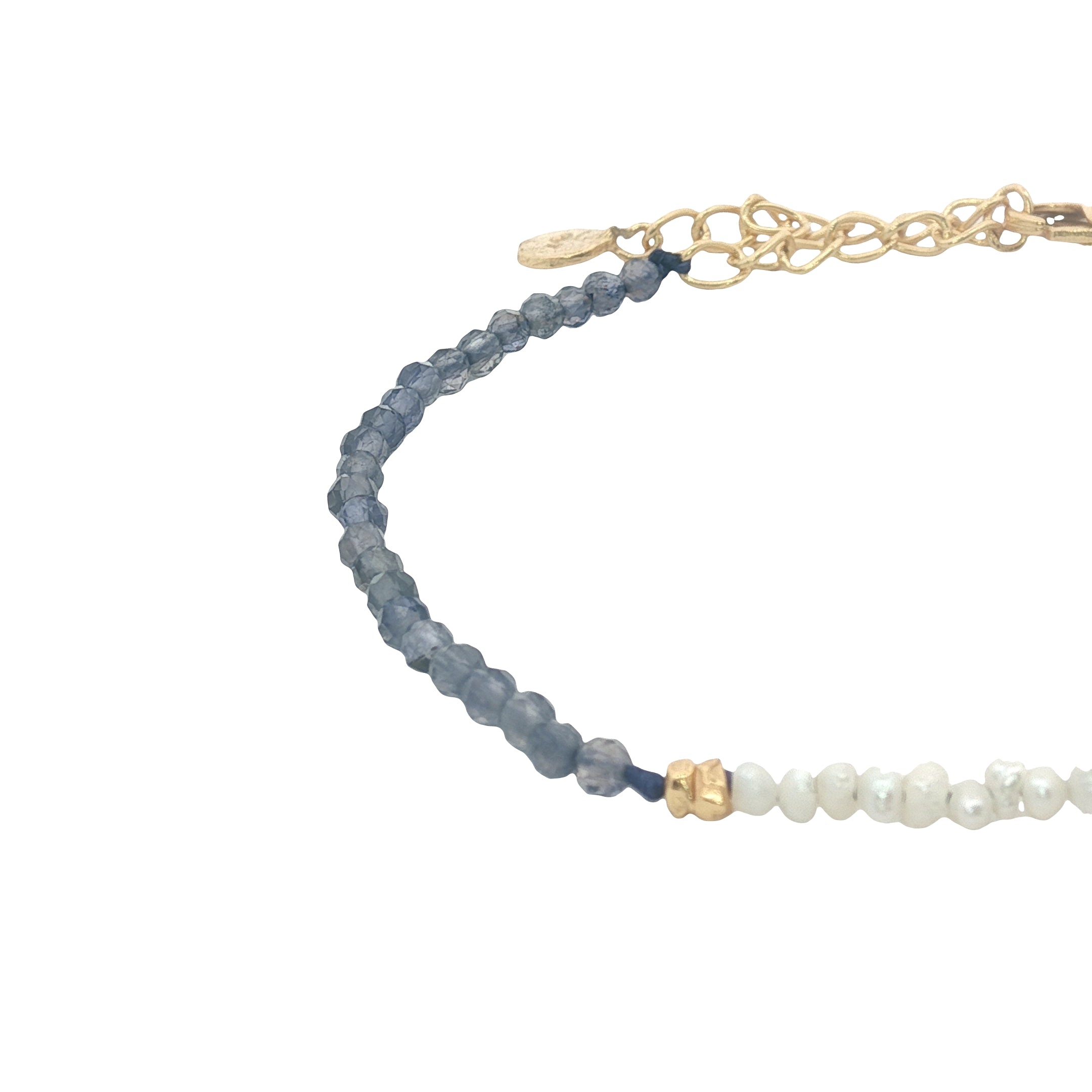 Bracelet doré en iolite, petites perles de culture et perles dorées
