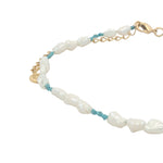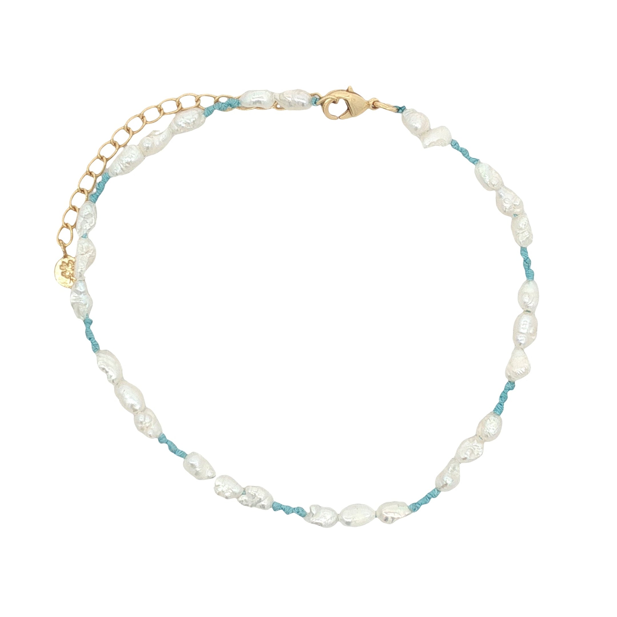 Chaine de cheville dorée alternance perles de culture et noeuds turquoise