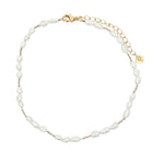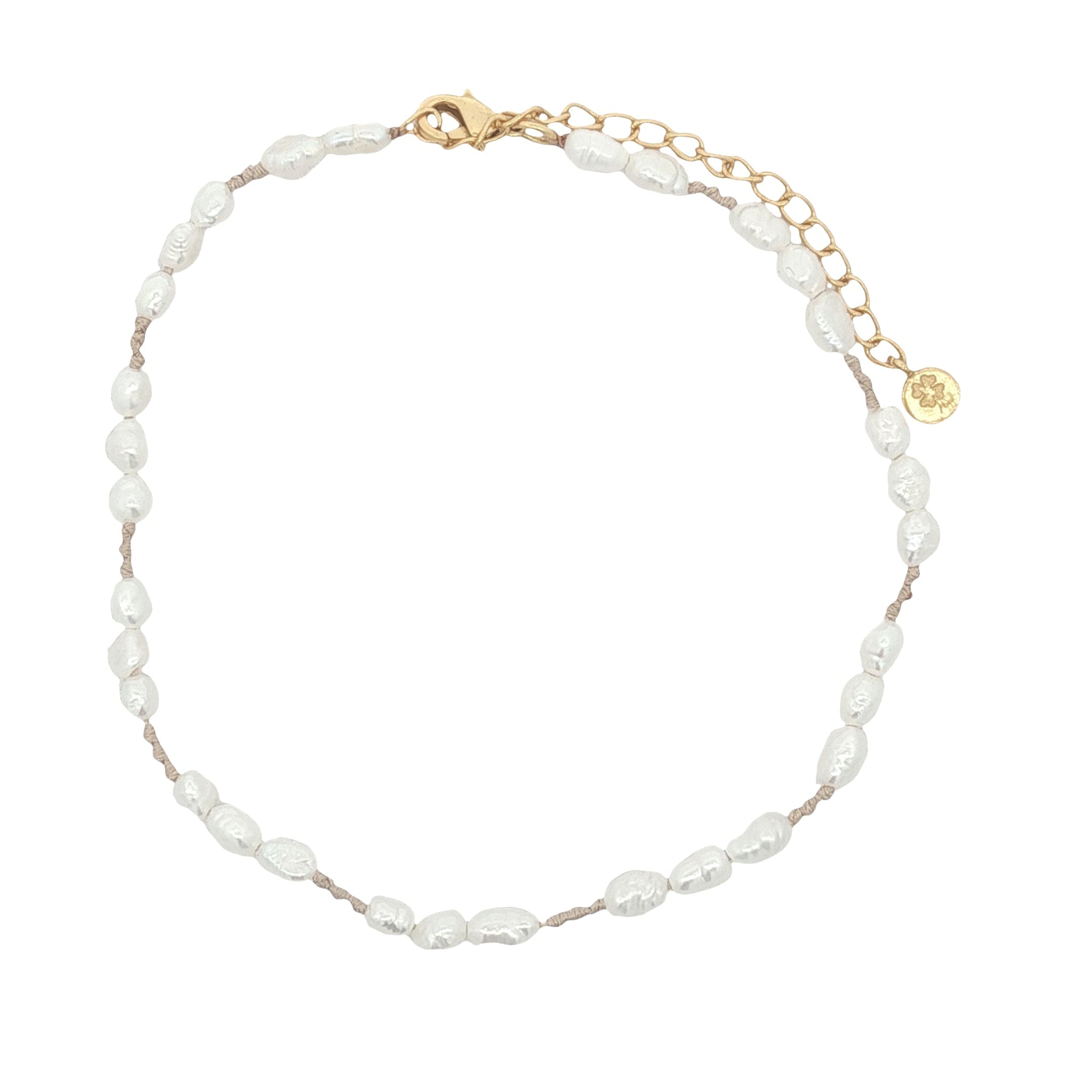Chaine de cheville dorée alternance perles de culture et noeuds beige