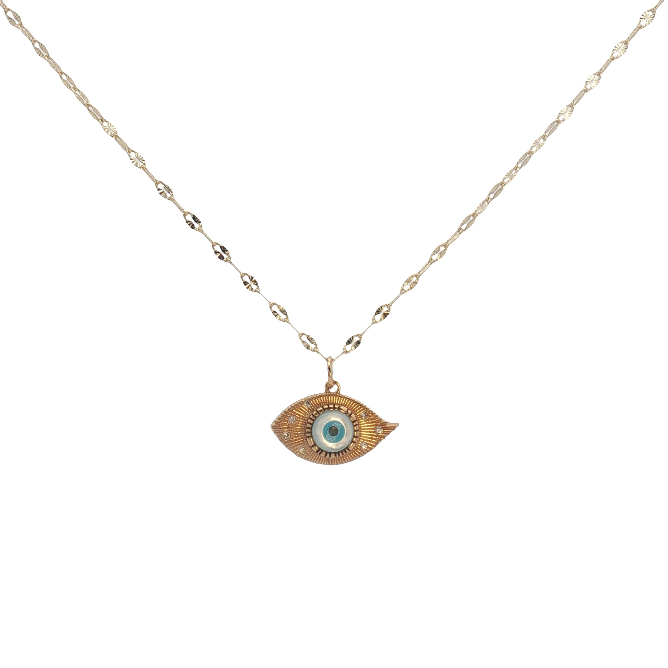 Collier doré médaille avec oeil en nacre et zircons 50 cm