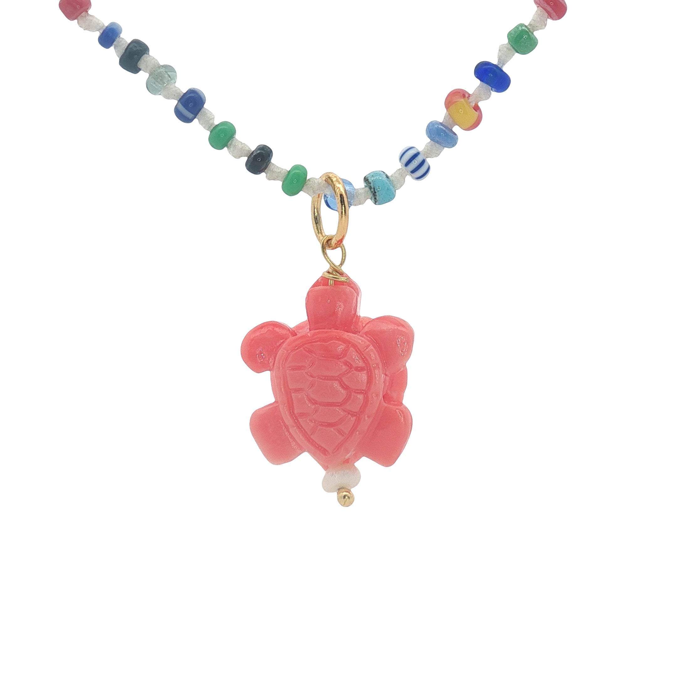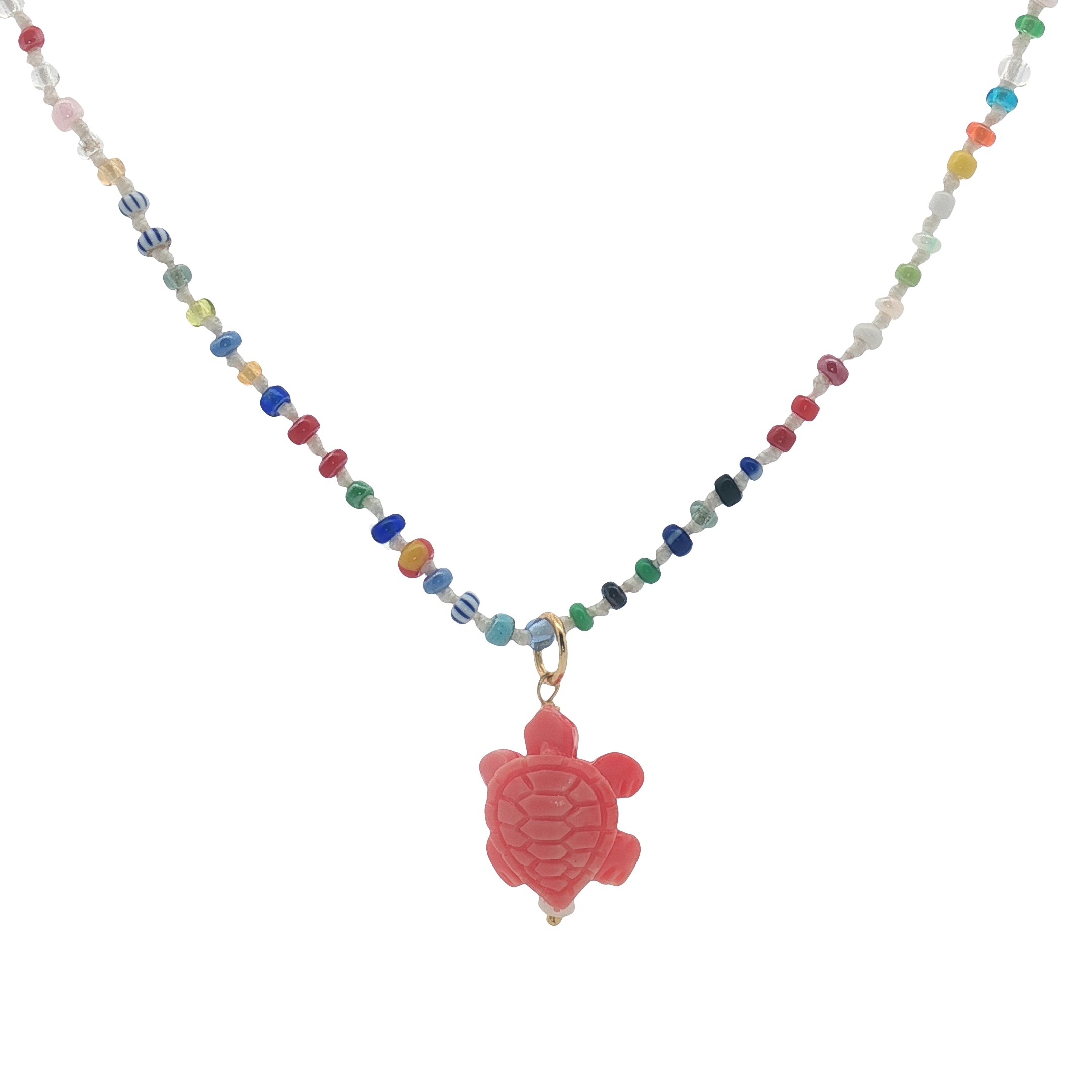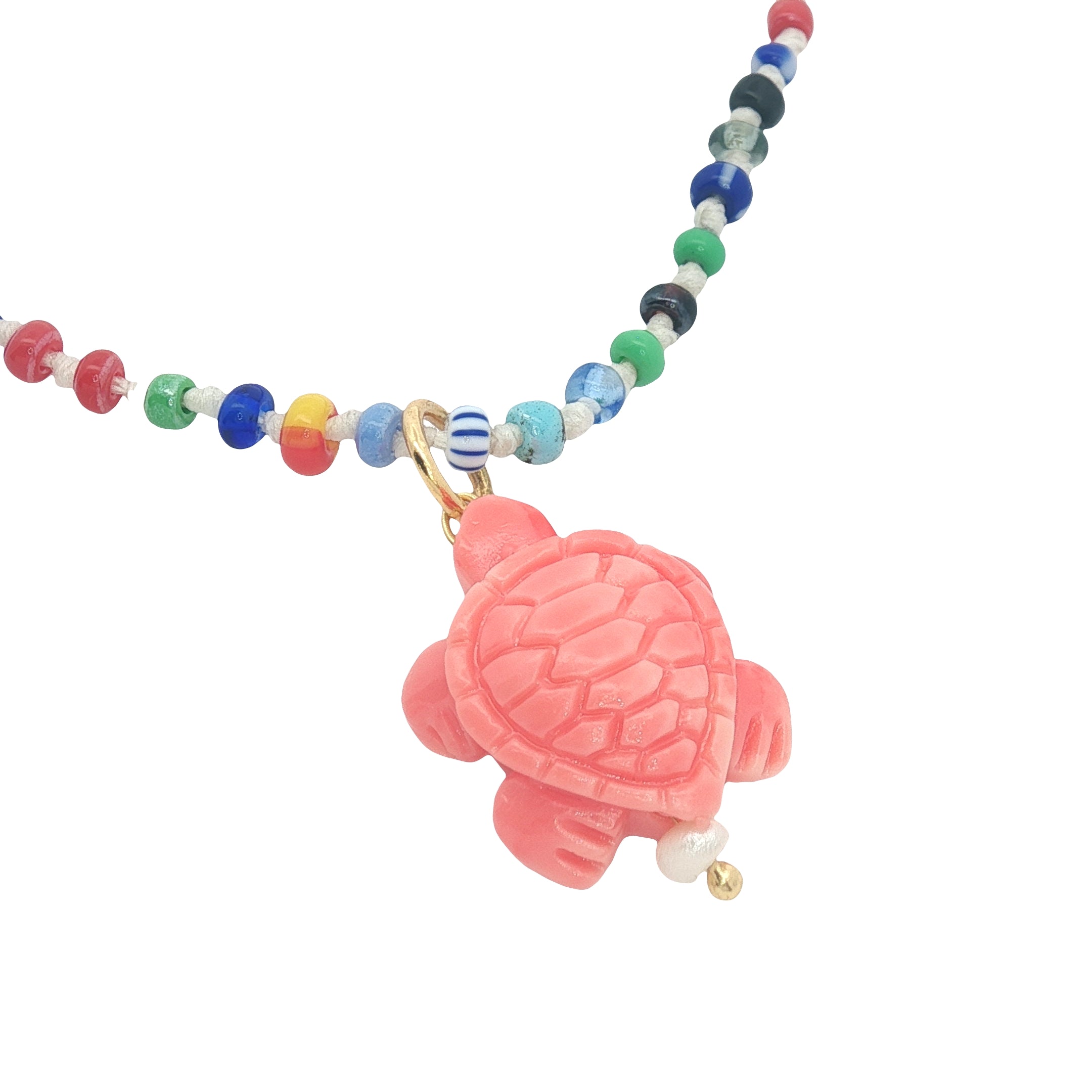 Collier doré tortue rose perles multicolores 50 cm