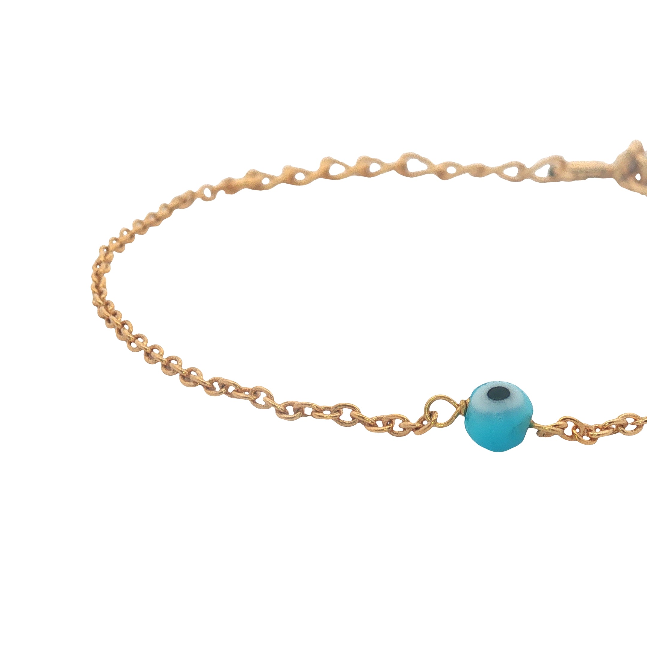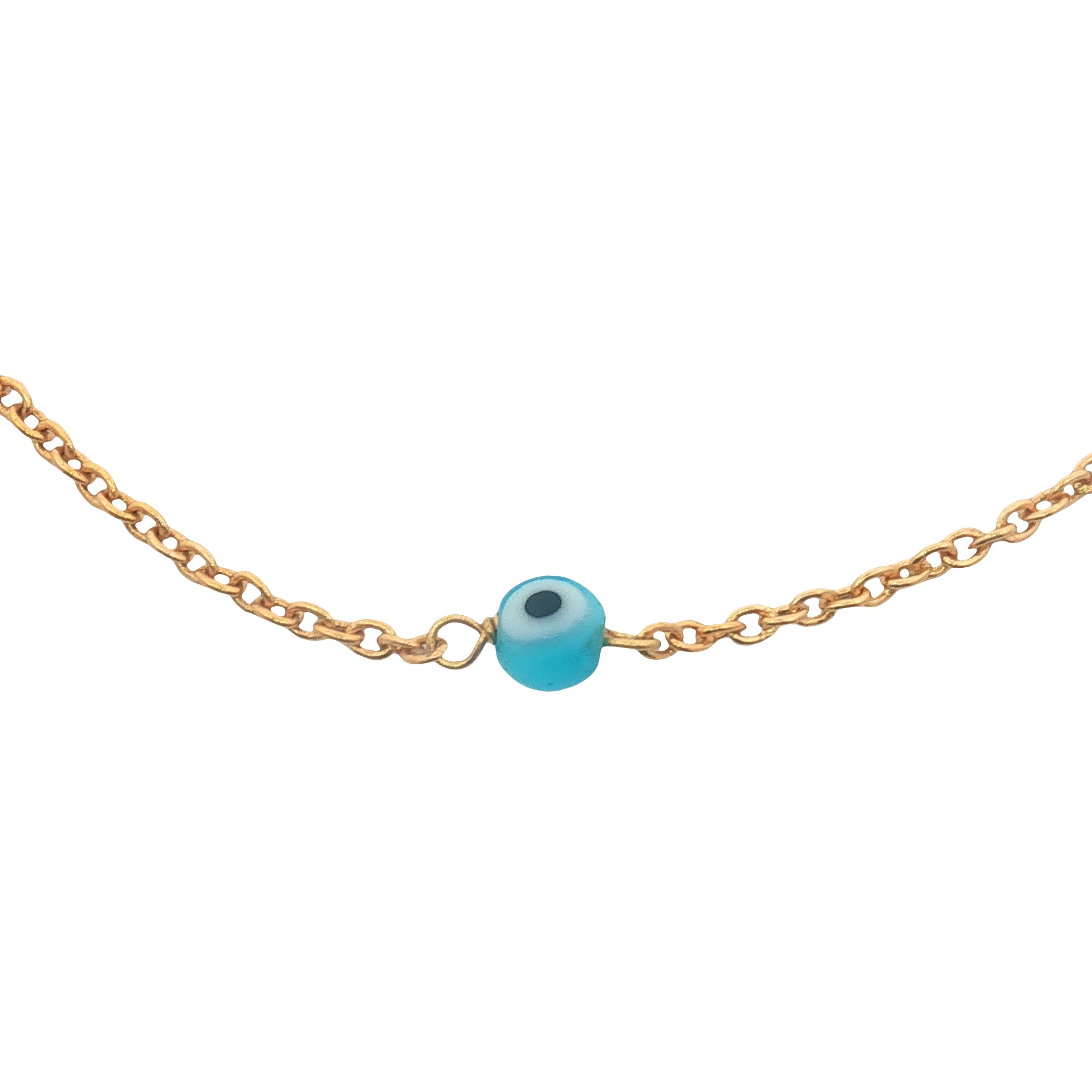 Bracelet doré perles bleues oeil et dorées