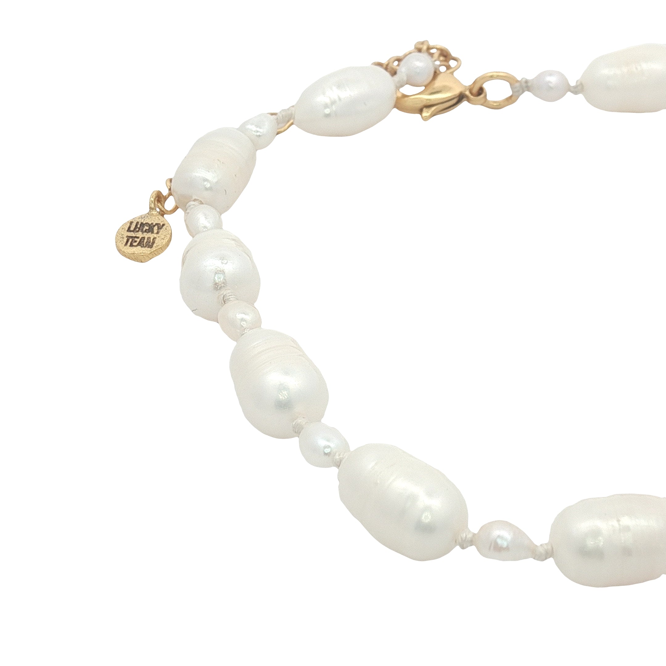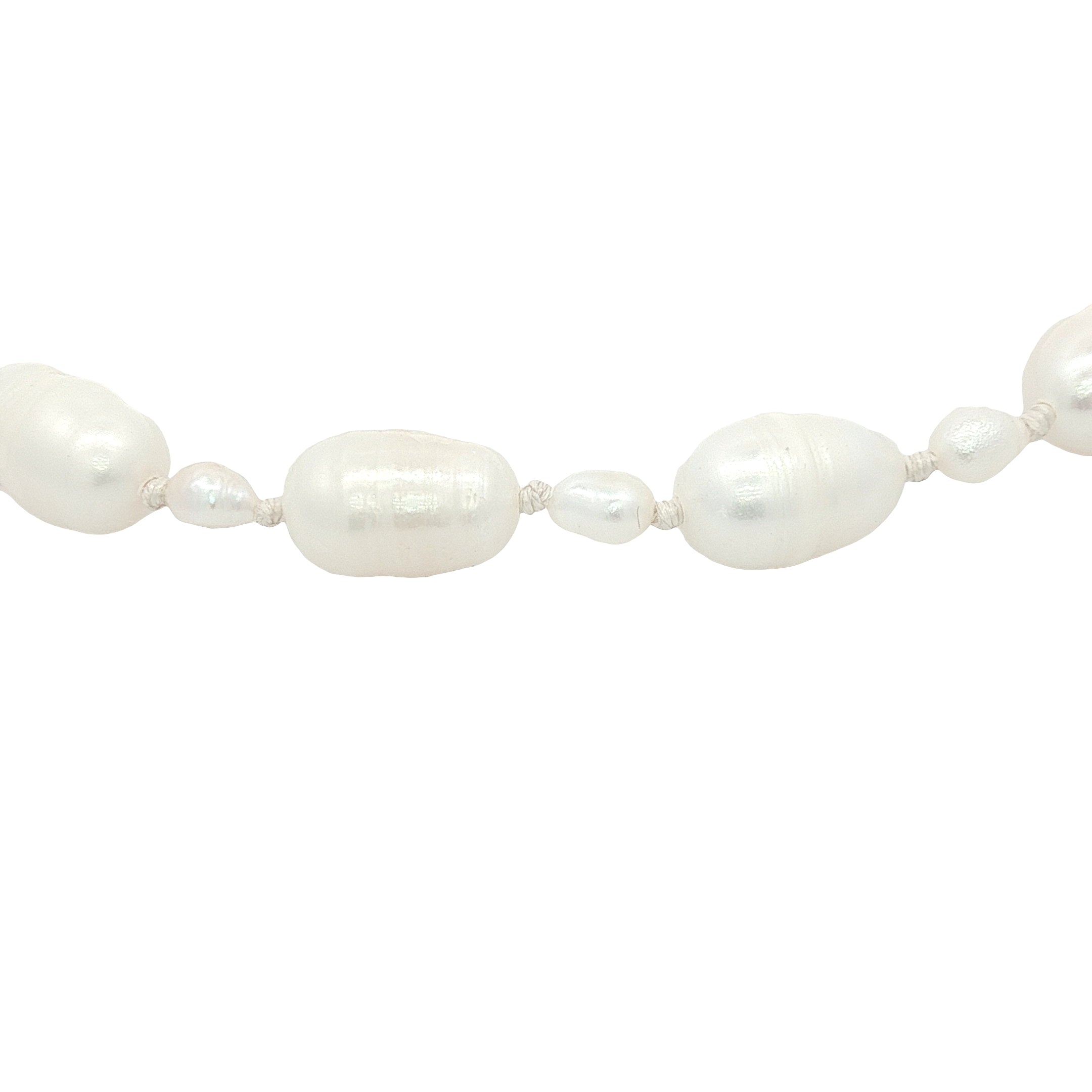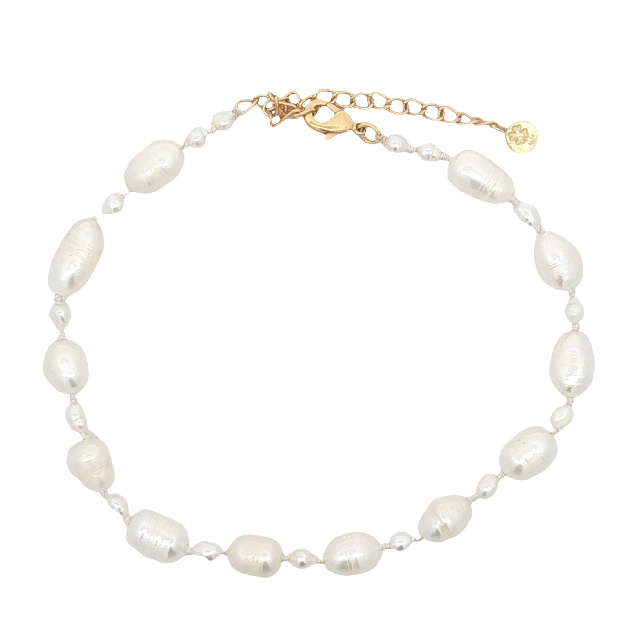 Chaine de cheville avec alternance de petites et grandes perles de culture et noeuds blancs