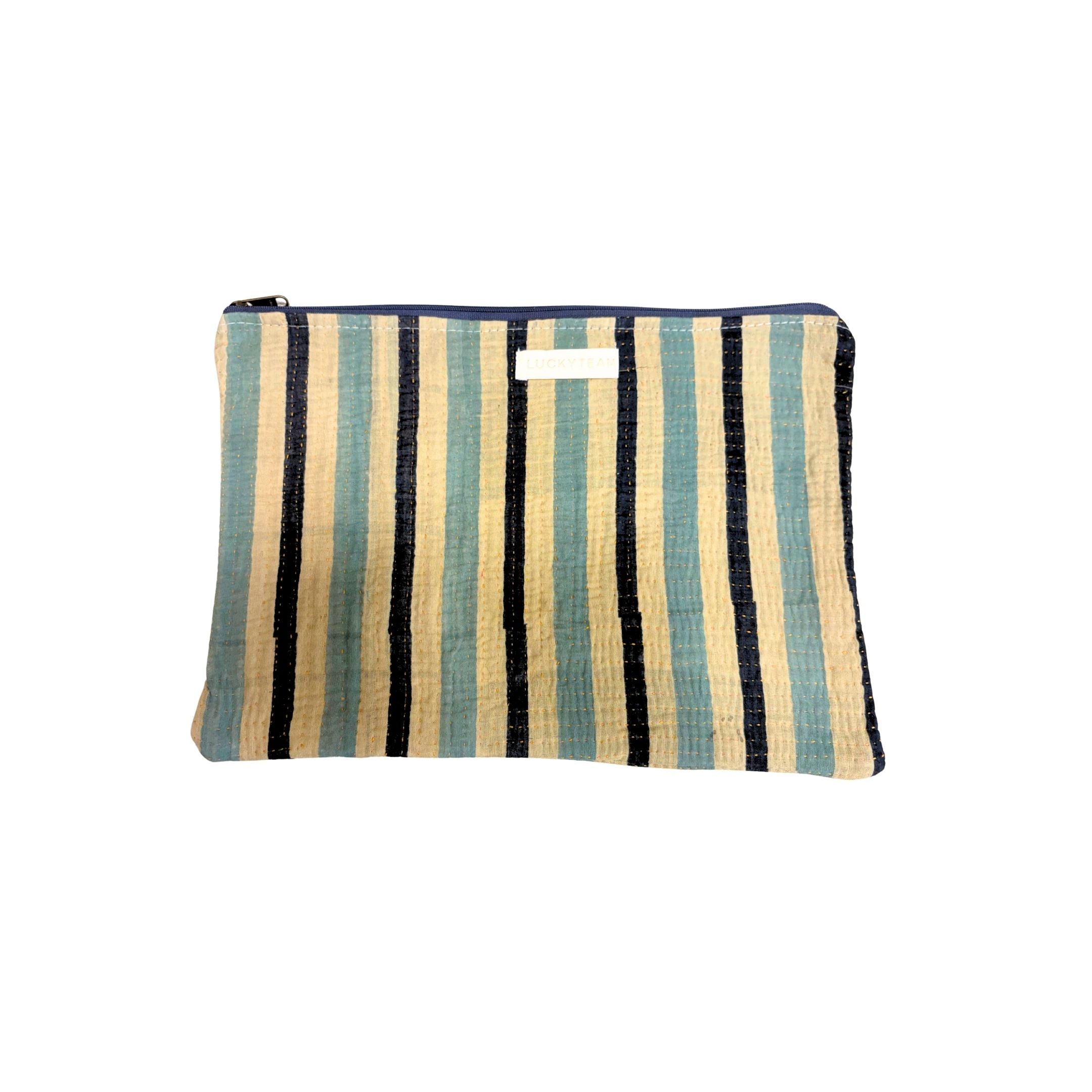 Grande pochette de voyage kantha imprimé beige, bleu et bleu marine