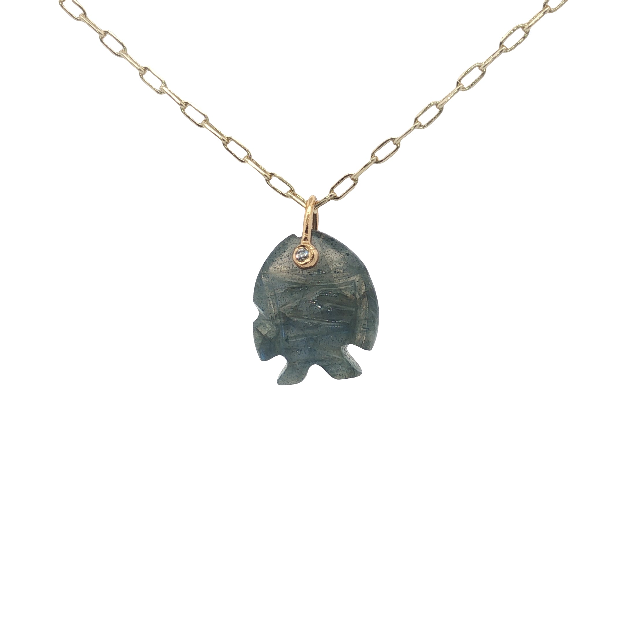 Poisson taillé dans la pierre avec les yeux en zircons blancs