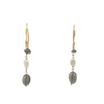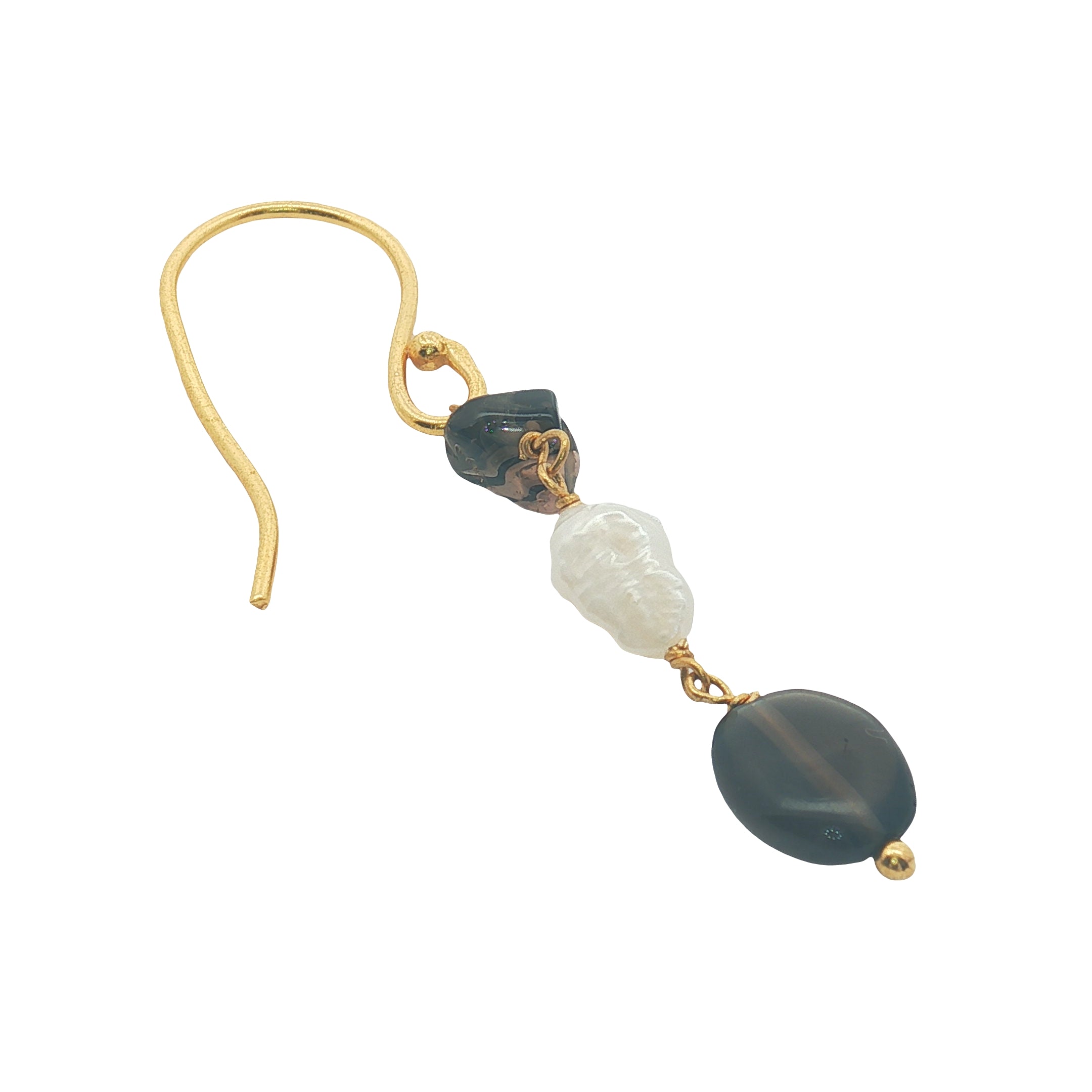 Boucles d'oreilles pendantes dorées quartz fumé et perle de culture