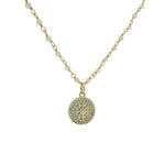 Collier doré rosary pierre de lune et médaille rose des vents 50 cm