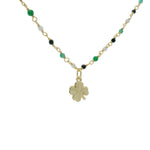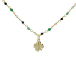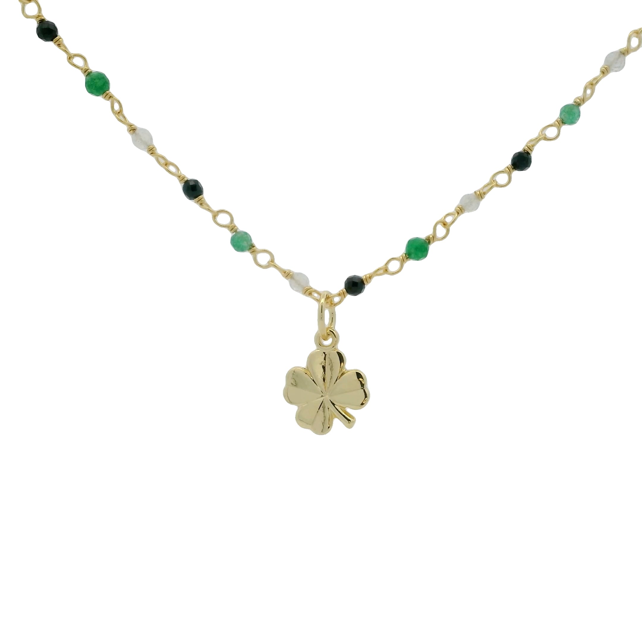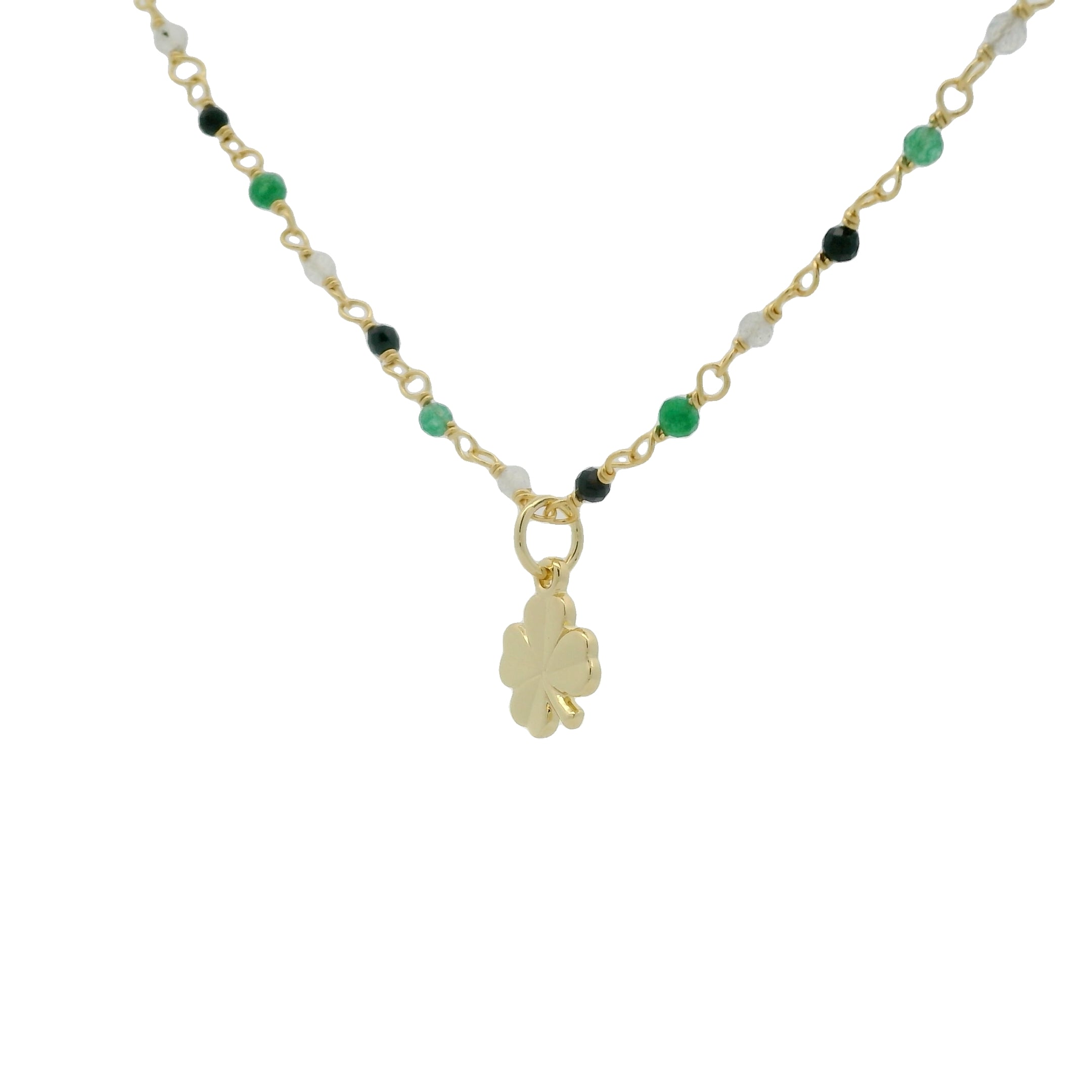 Collier doré rosary trèfle et onyx verte labradorite onyx noire 44cm