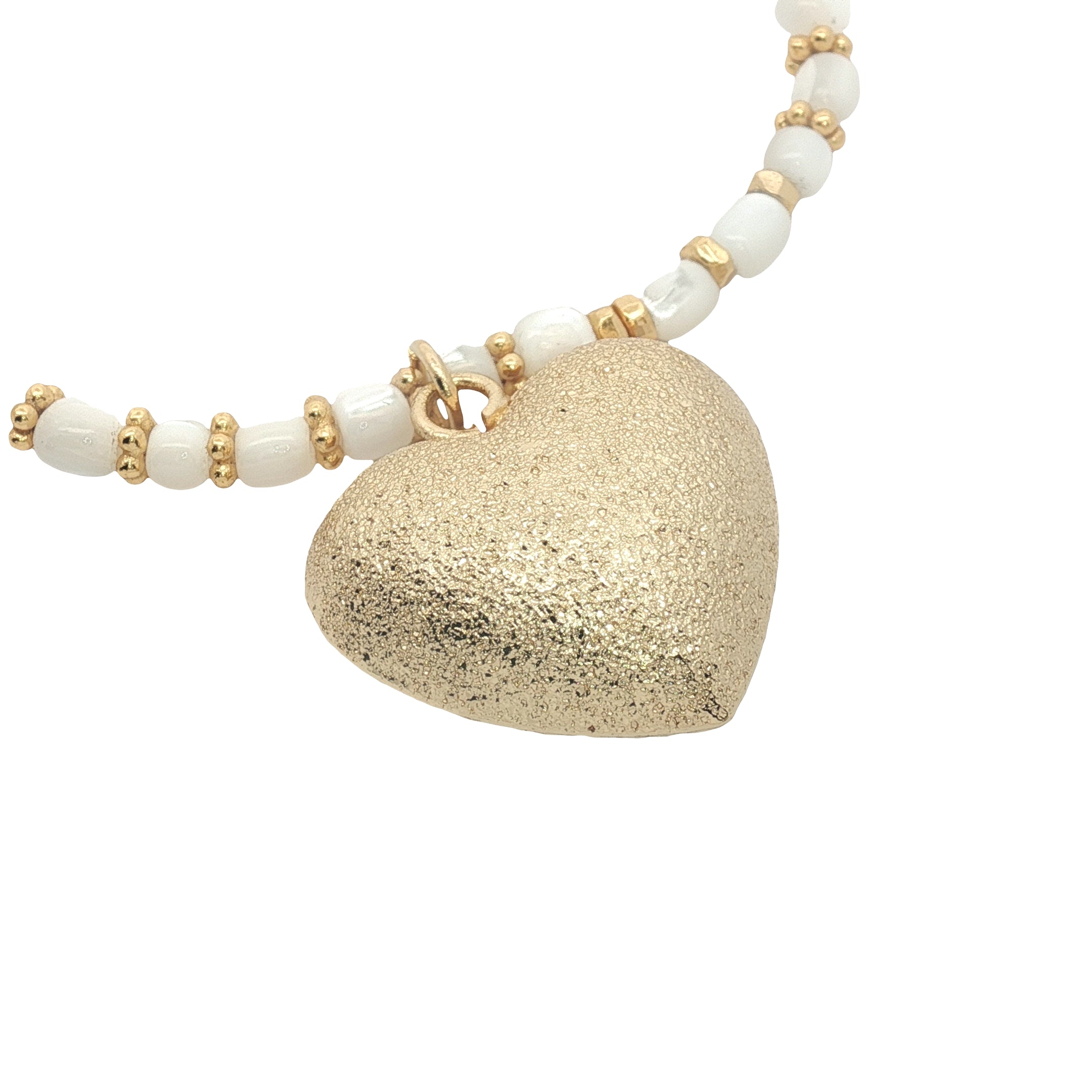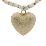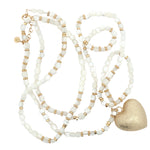 Collier coeur doré perles de nacre et perles dorées 90 cm