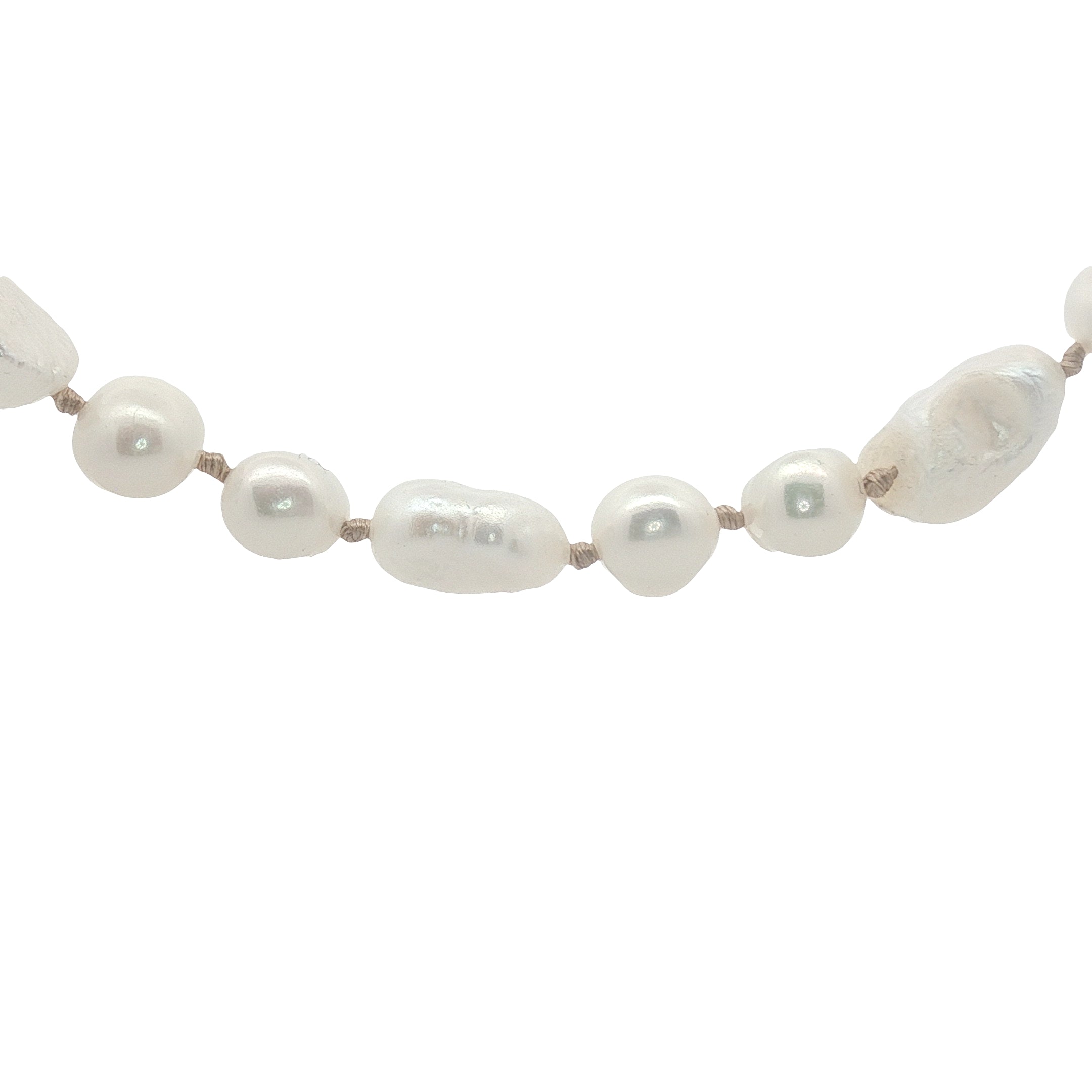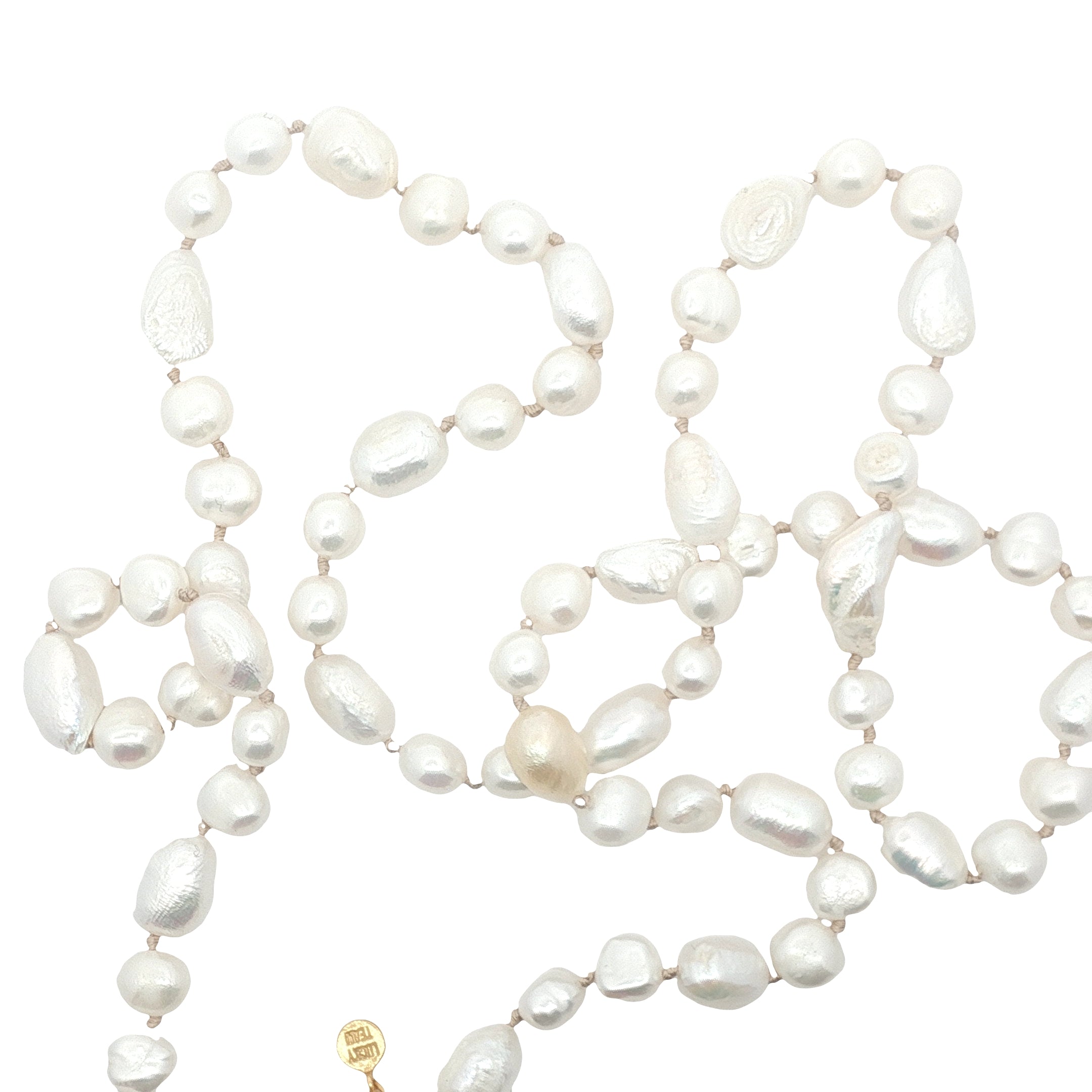 Collier doré perles rondes et perle longue noeuds blancs 75 cm