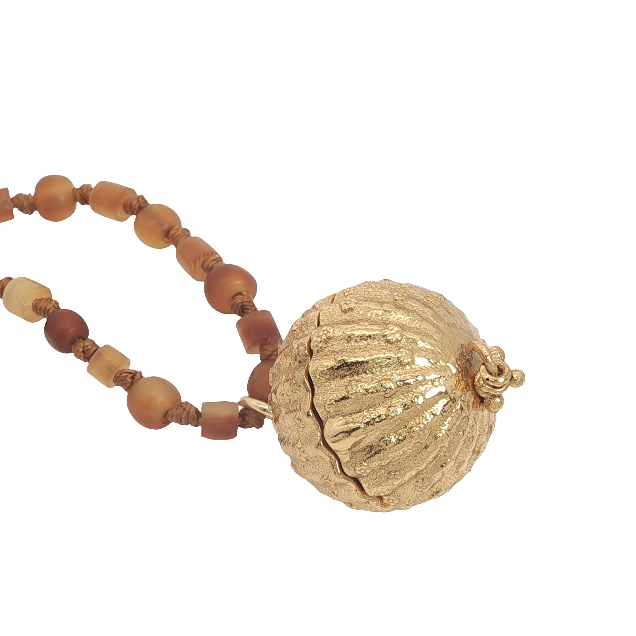 Collier Bola doré mix perles marrons boule dorée 75 cm