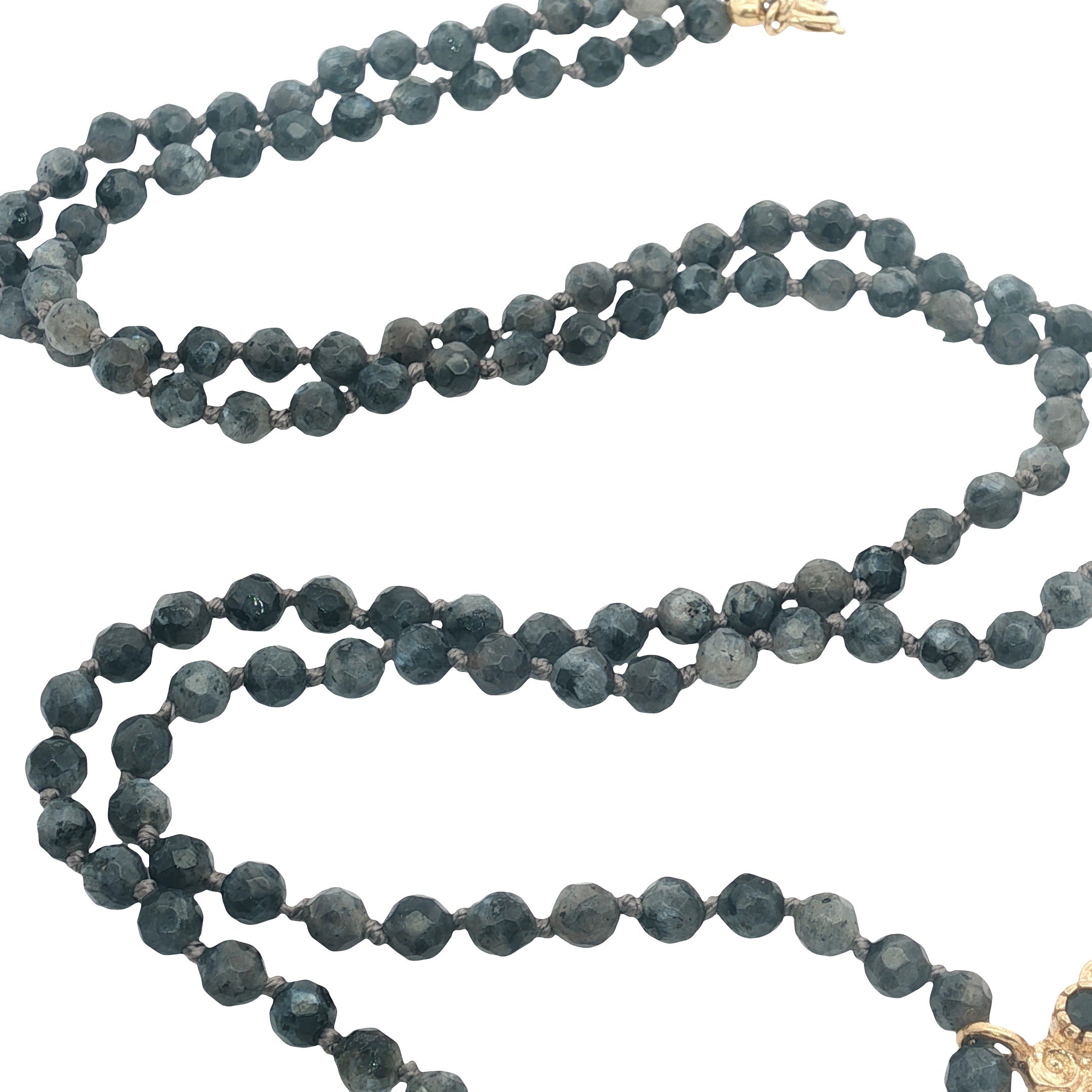 Sautoir doré rosary labradorite et trèfle 84 cm