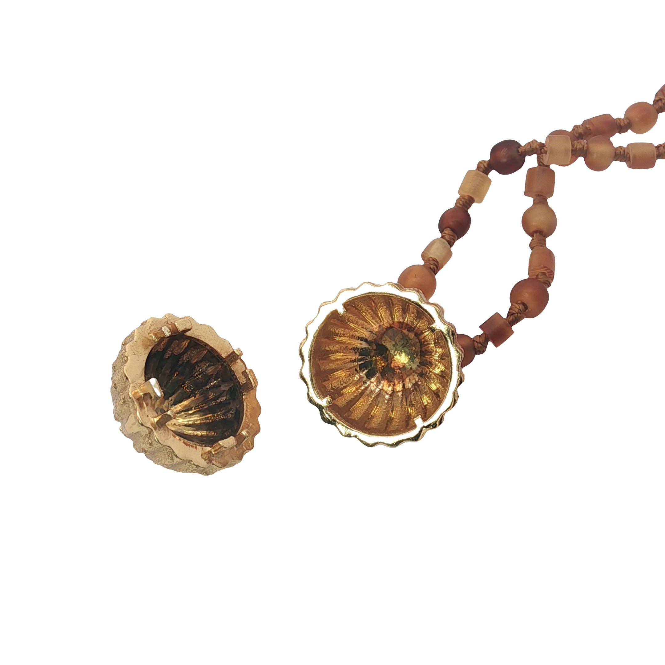 Pendentif boule striée qui s'ouvre avec pampilles : 25 mm x 18 mm