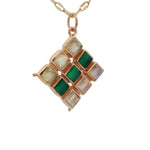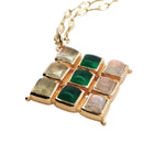 Sautoir doré Losange prehnite, onyx verte et pierre de lune 75 cm