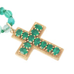 Collier doré mix perles vertes croix onyx verte 75 cm