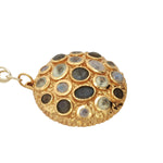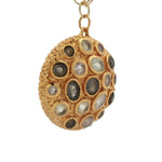 Collier doré médaillon massif avec pierre de lune et labradorite 75 cm
