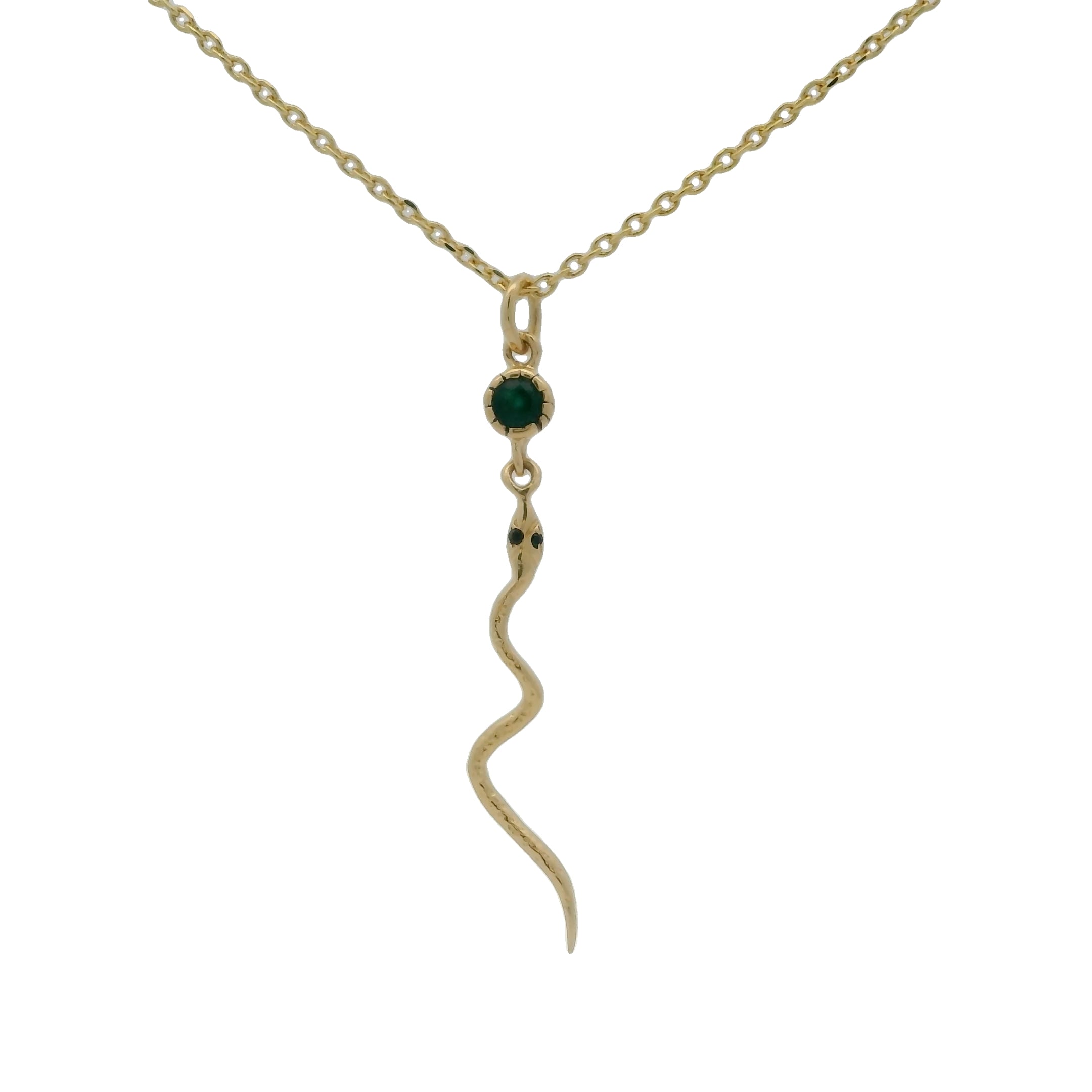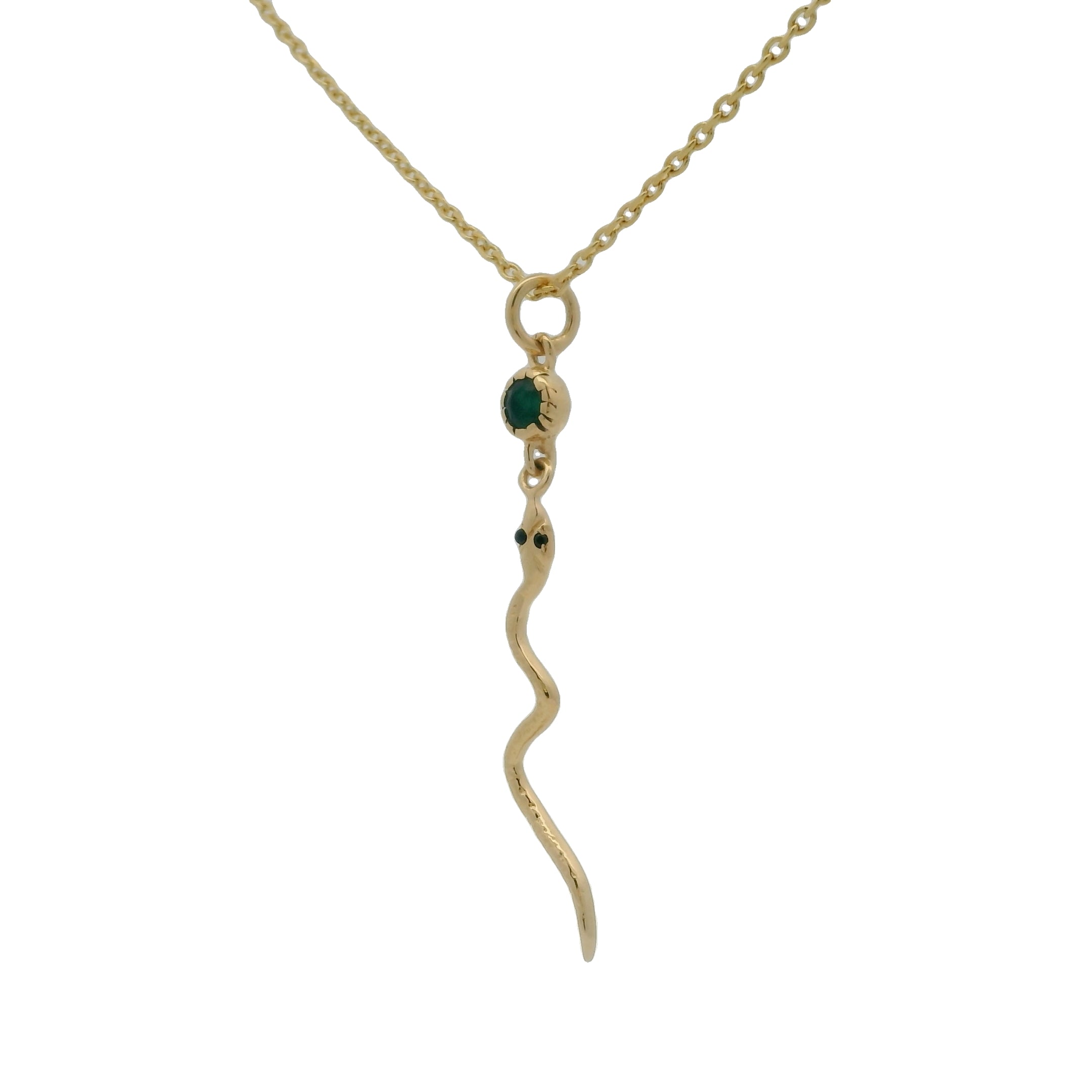 Gold necklace with snake and stone pendant