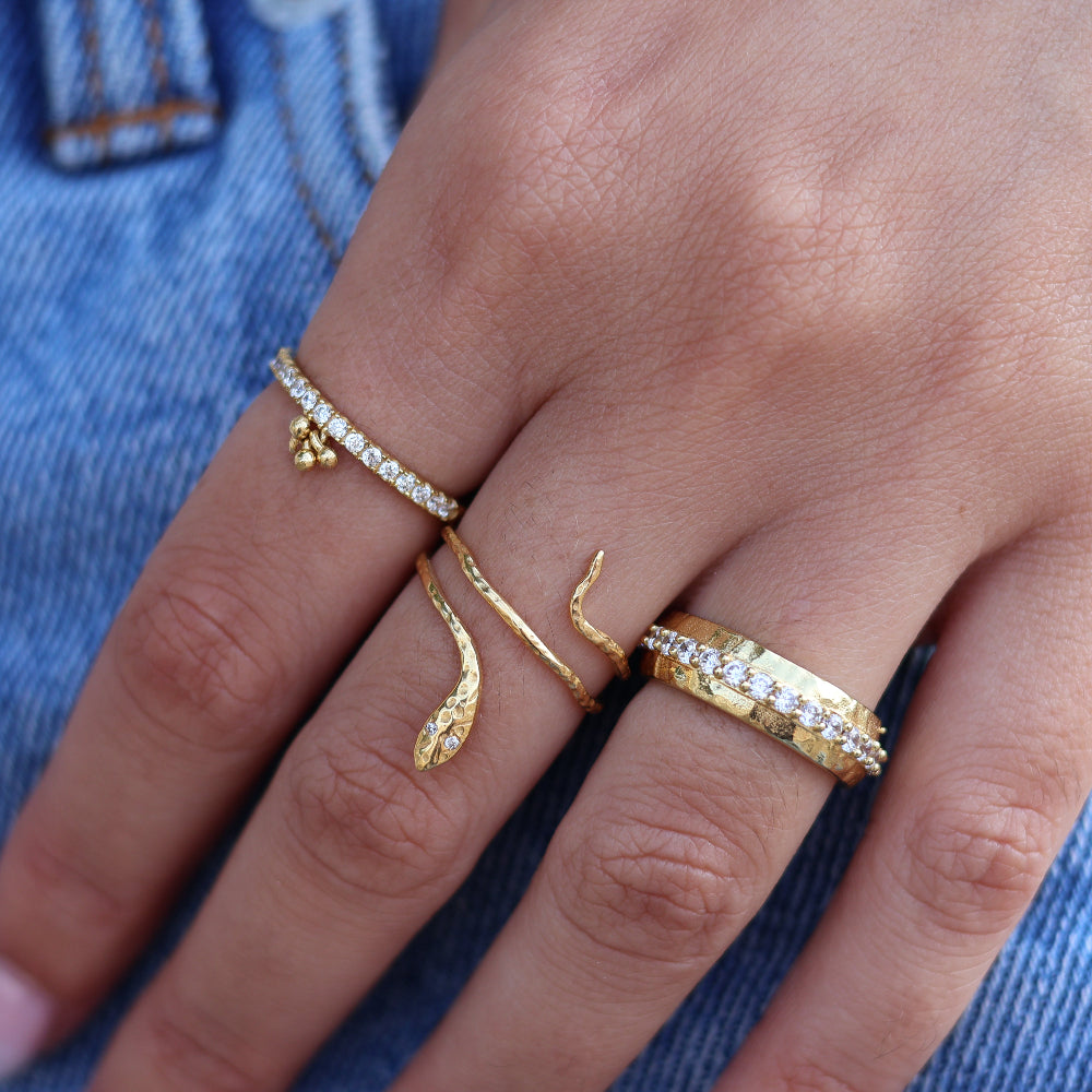 This 18k fine gold plated ring represents the snake, symbol of healing, evolution and transformation.