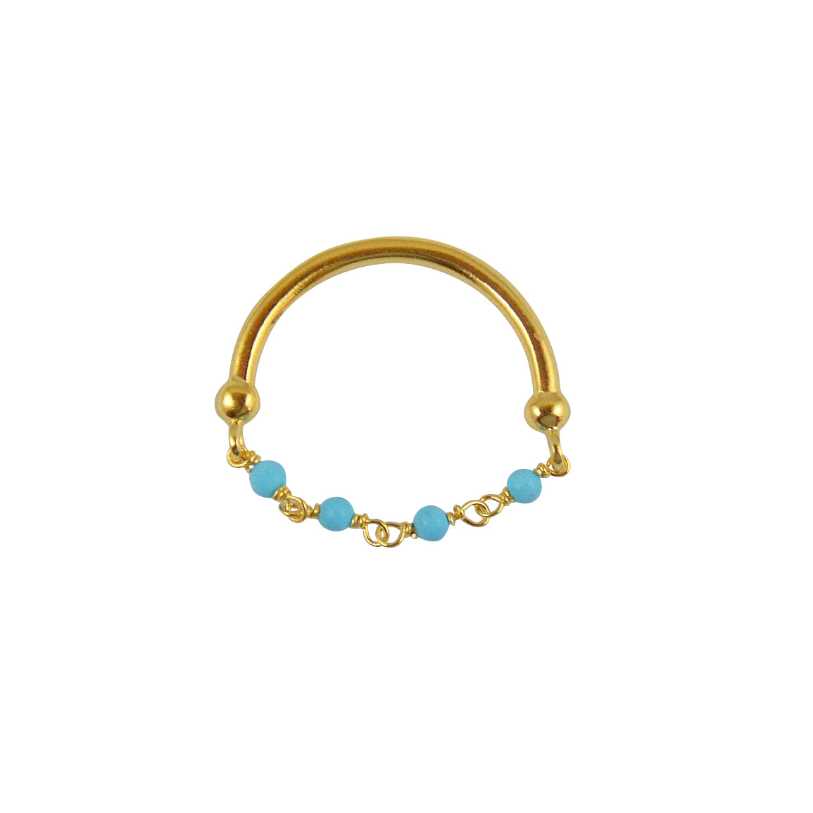 Ring in brass gilded with 18k fine gold, half rigid, half chain and faceted natural stones.